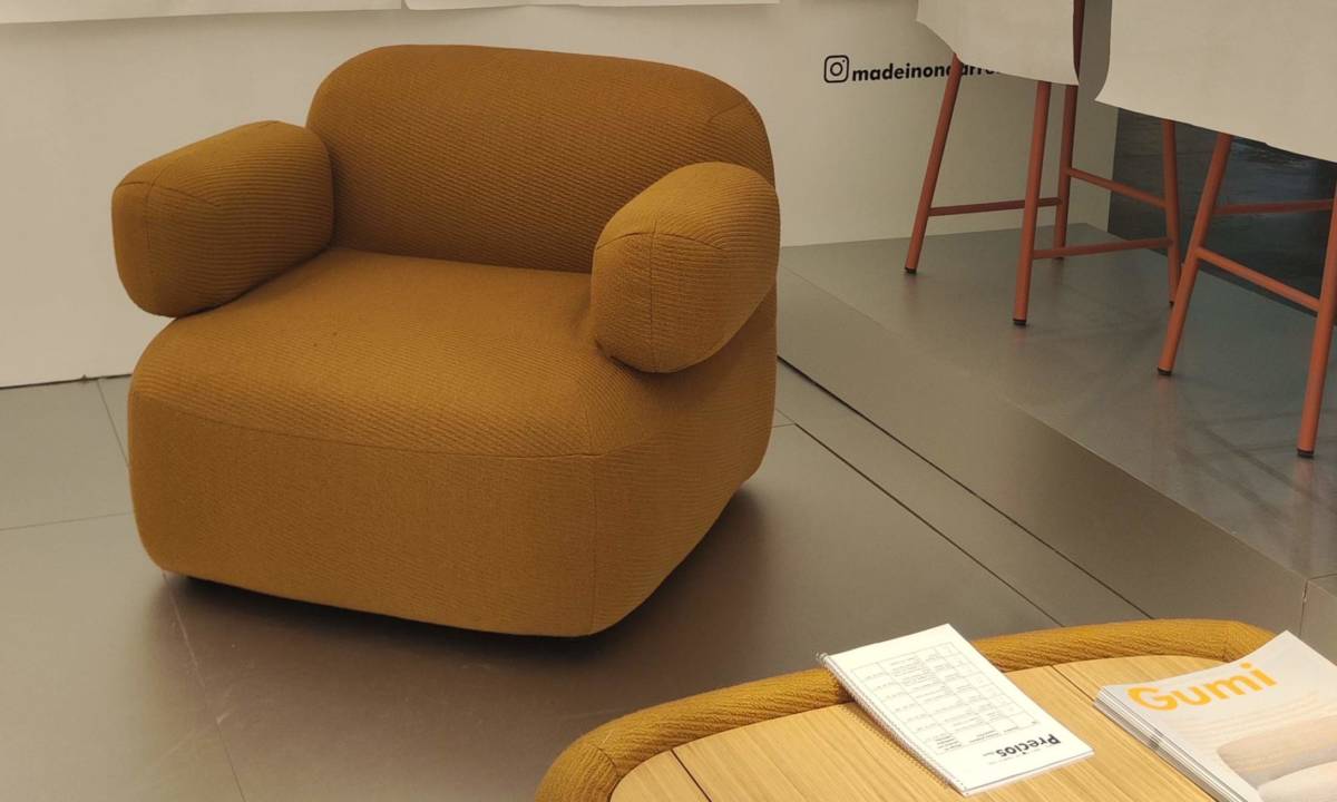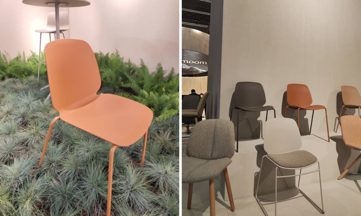 Los vascos nos sorprendieron presentando el prototipo de su nueva silla Laino, en diferentes tonos y acabados, manteniendo su clásica esencia en un stand donde el mostaza era el claro protagonista.