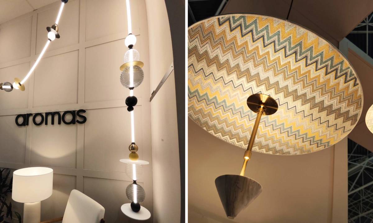 La empresa valenciana trajo en sus maletas todo novedades, con lámparas colgantes, juegos de luces, formas femeninas, cubos de alabastro iluminados, y hasta luminarias con textiles Missoni.