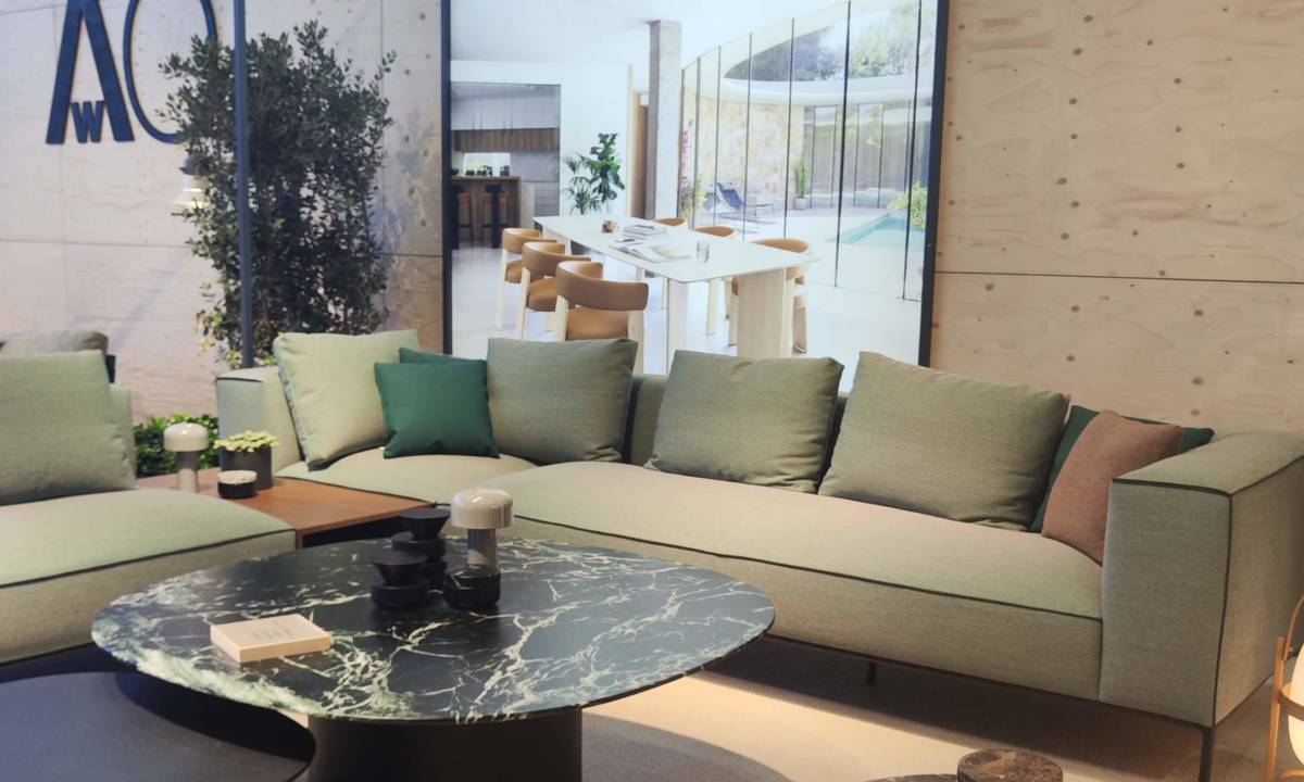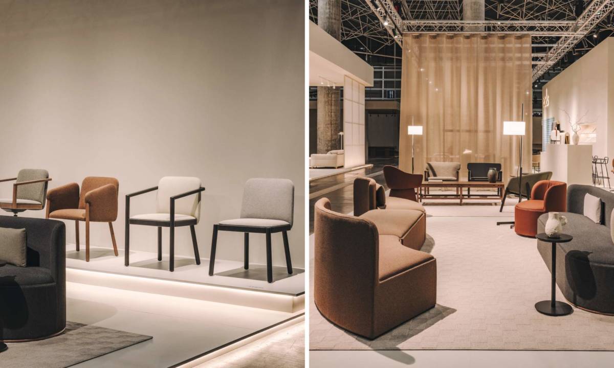 - La propuesta Joquer con sus sofás en colores crudos nos inspiraron sobre soft seating y zonas de descanso.