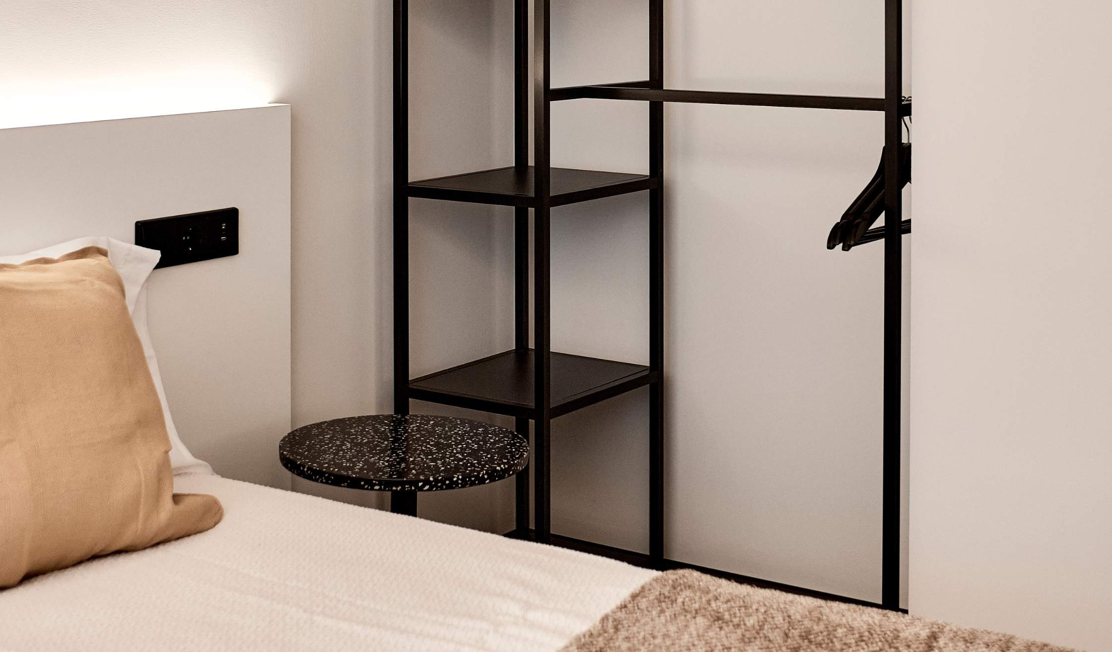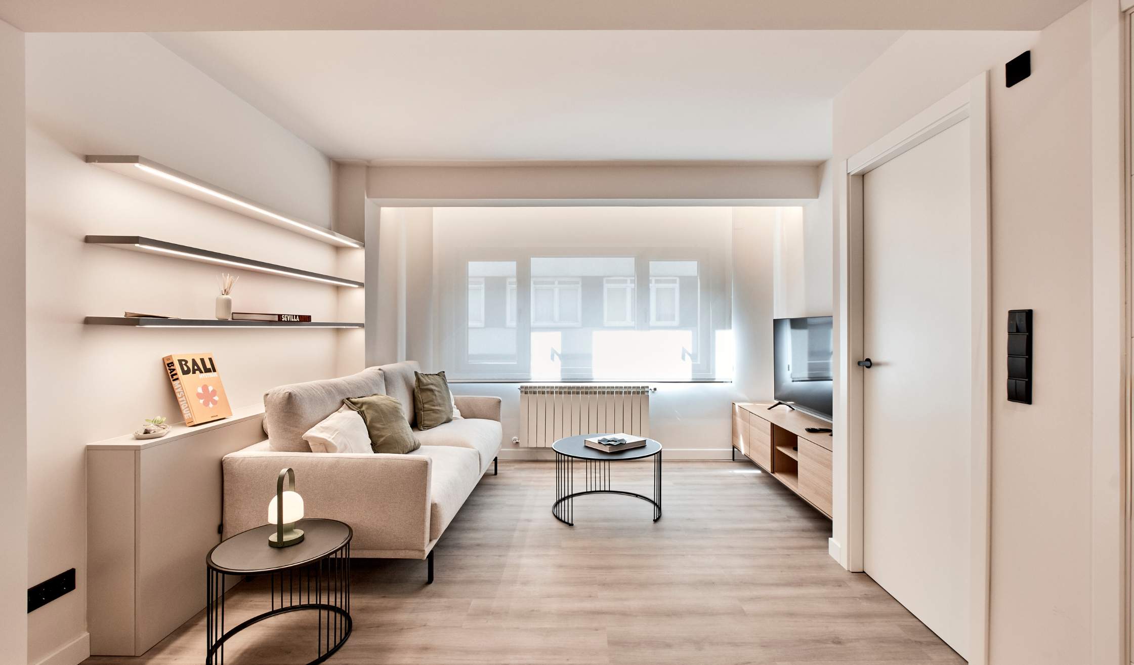 Cada apartamento se equipó pensando en la comodidad y la practicidad del día a día, incorporando mobiliario funcional como mesas y sillas compactas, sofás cómodos y armarios con gran capacidad de almacenamiento, además de estores que aportan privacidad y permiten regular la entrada de luz.
