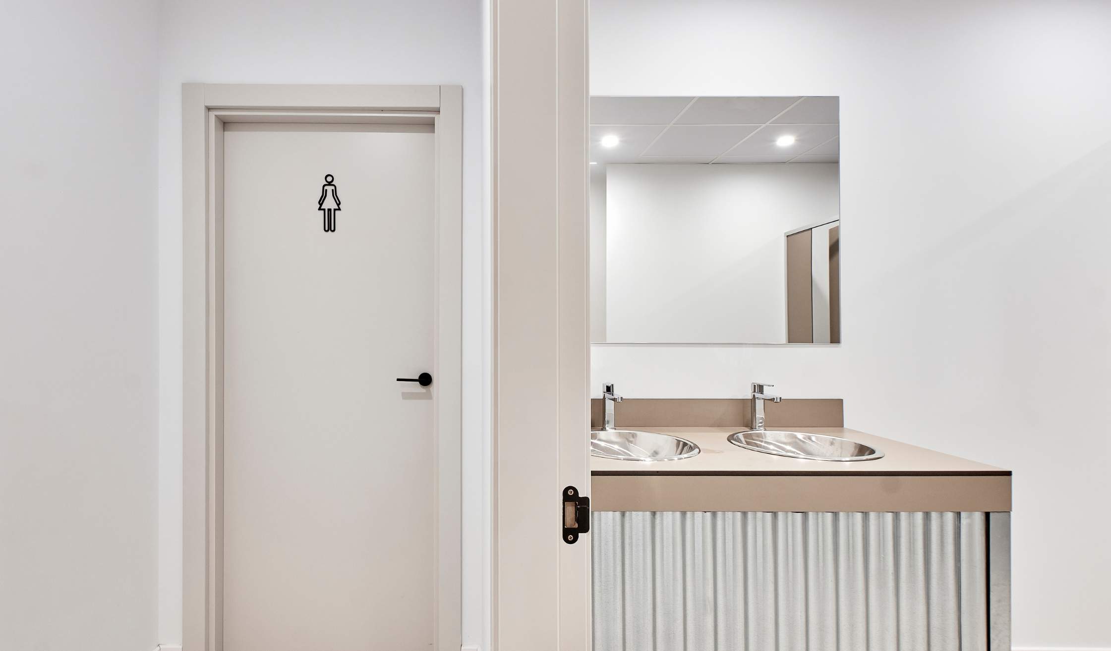 - Trabajos en aseos, respetando el aspecto industrial con uso de materiales como encimeras fenólicas o chapas onduladas, además de trabajos de fontanería.