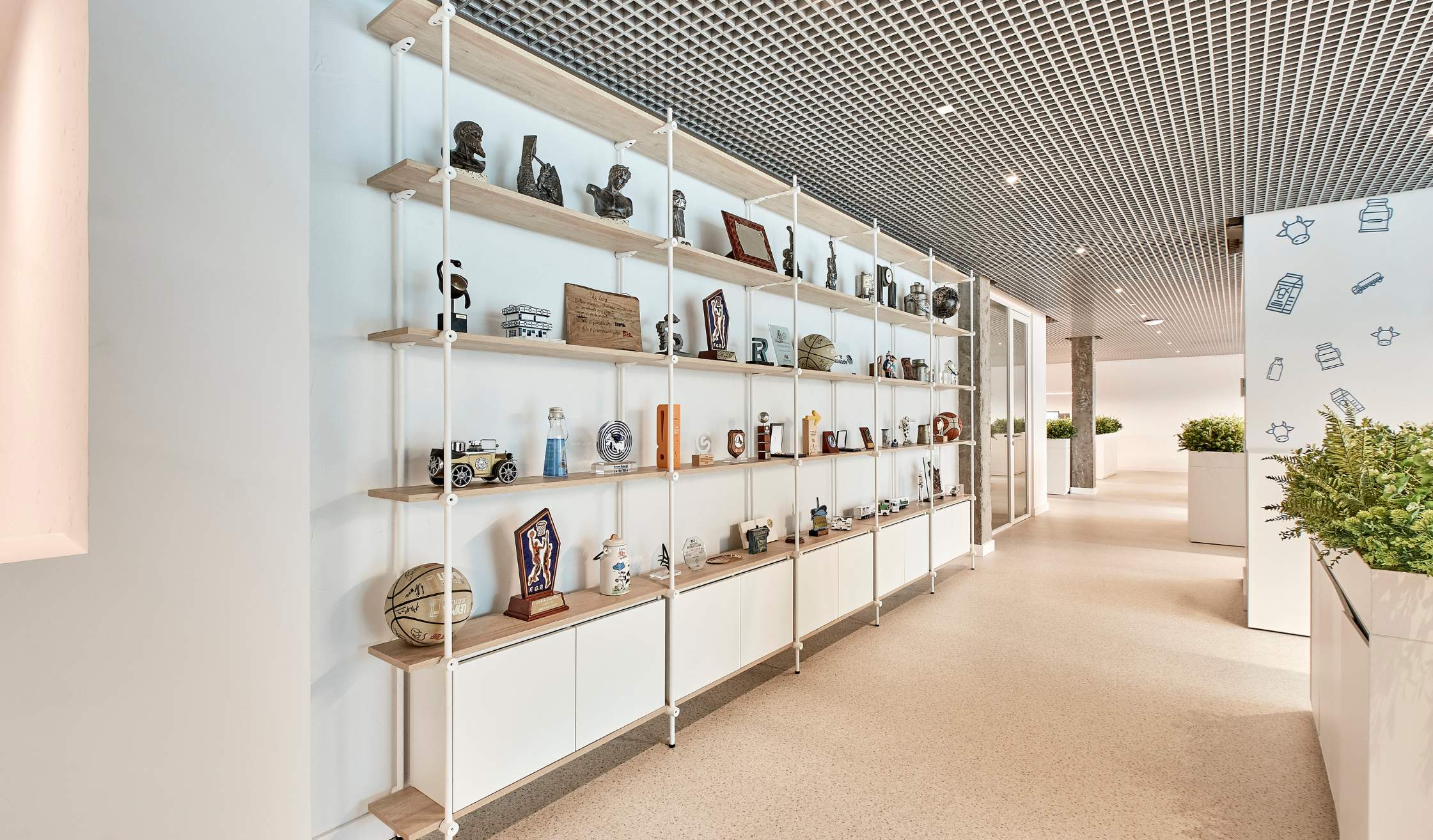 También se realizan trabajos de identidad visual, con actuaciones de rotulación y señalética, tanto a modo estético, inspirados en el universo lácteo y letras corporativas, como funcional, con señalética indicativa en todo el Workplace.