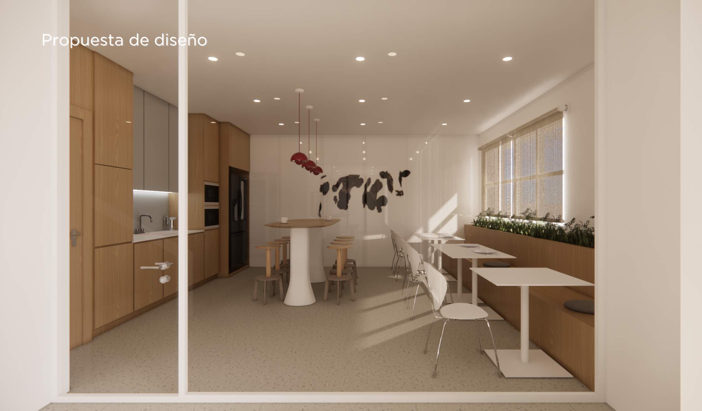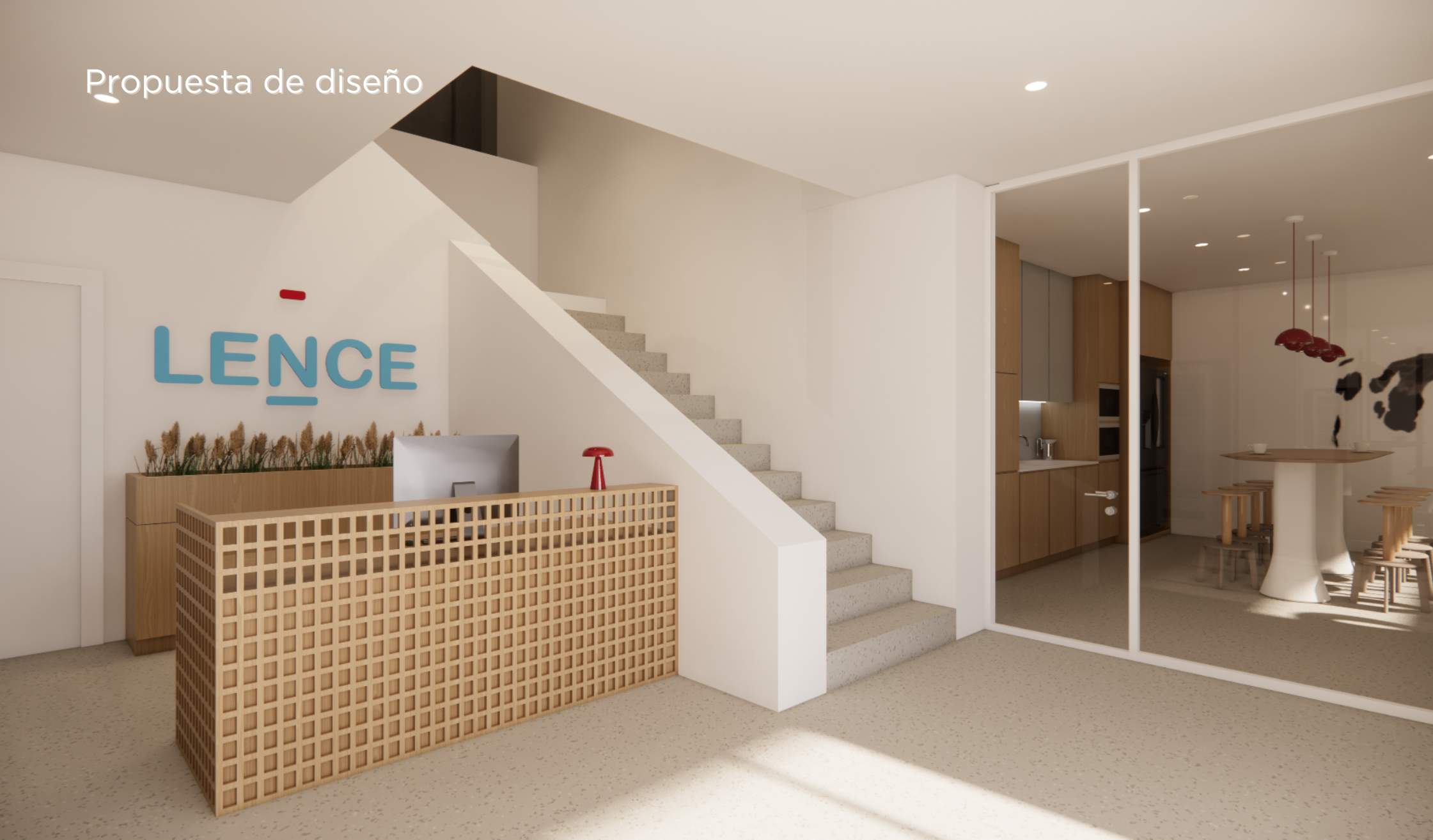 El proyecto mantiene la esencia de oficina industrial, como pide el cliente, pero introduce calidez, coherencia visual y bienestar.