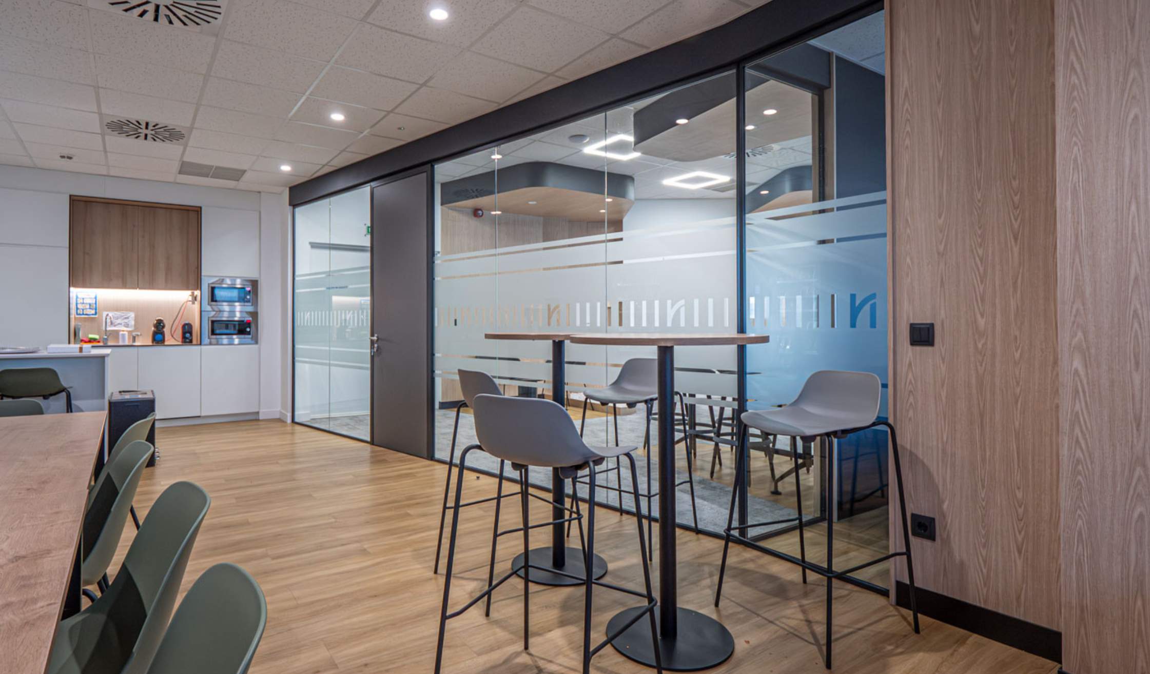 Gracias a la coordinación entre diseño, obra y equipamiento, cada rincón refleja la identidad corporativa de Nauterra y se convierte en un entorno funcional, flexible y acogedor.