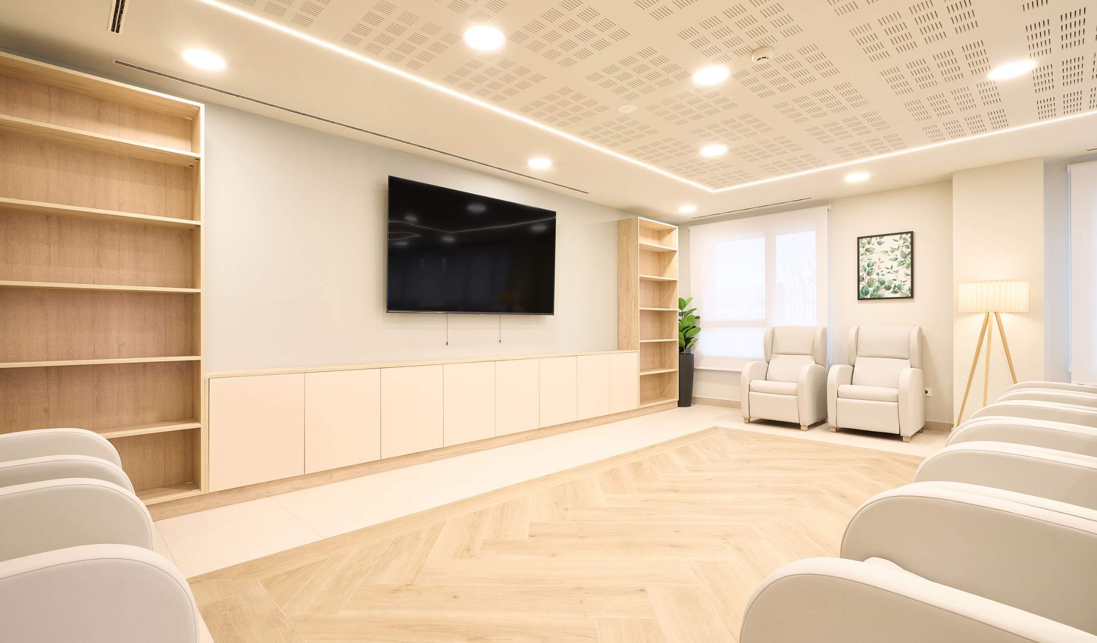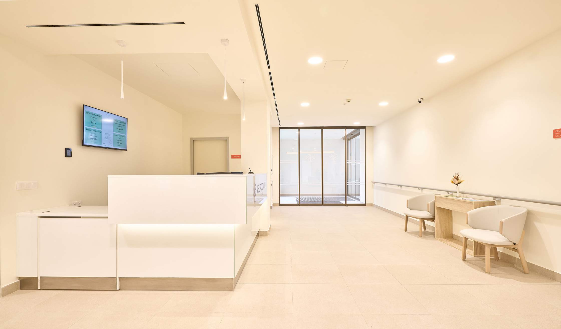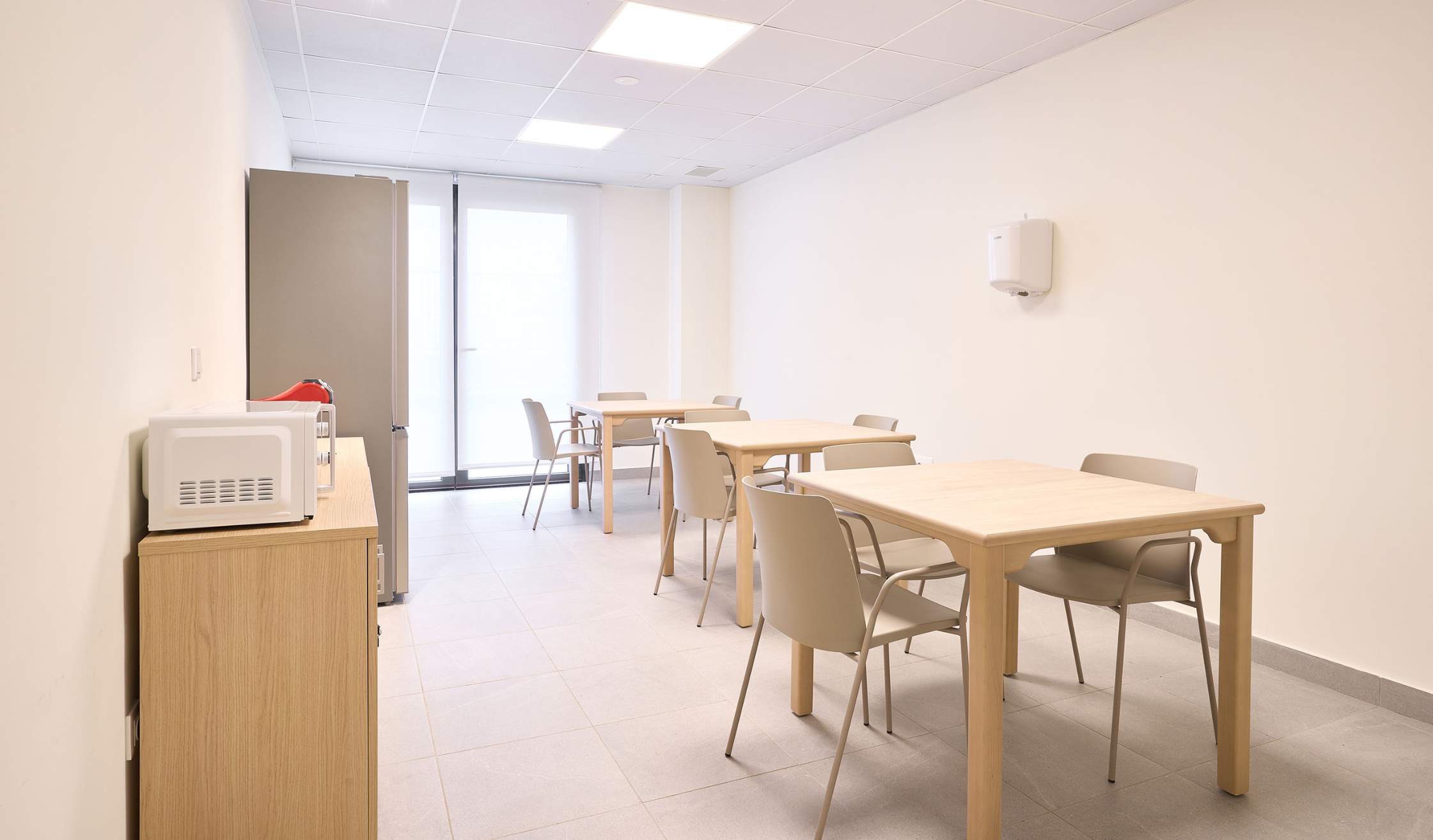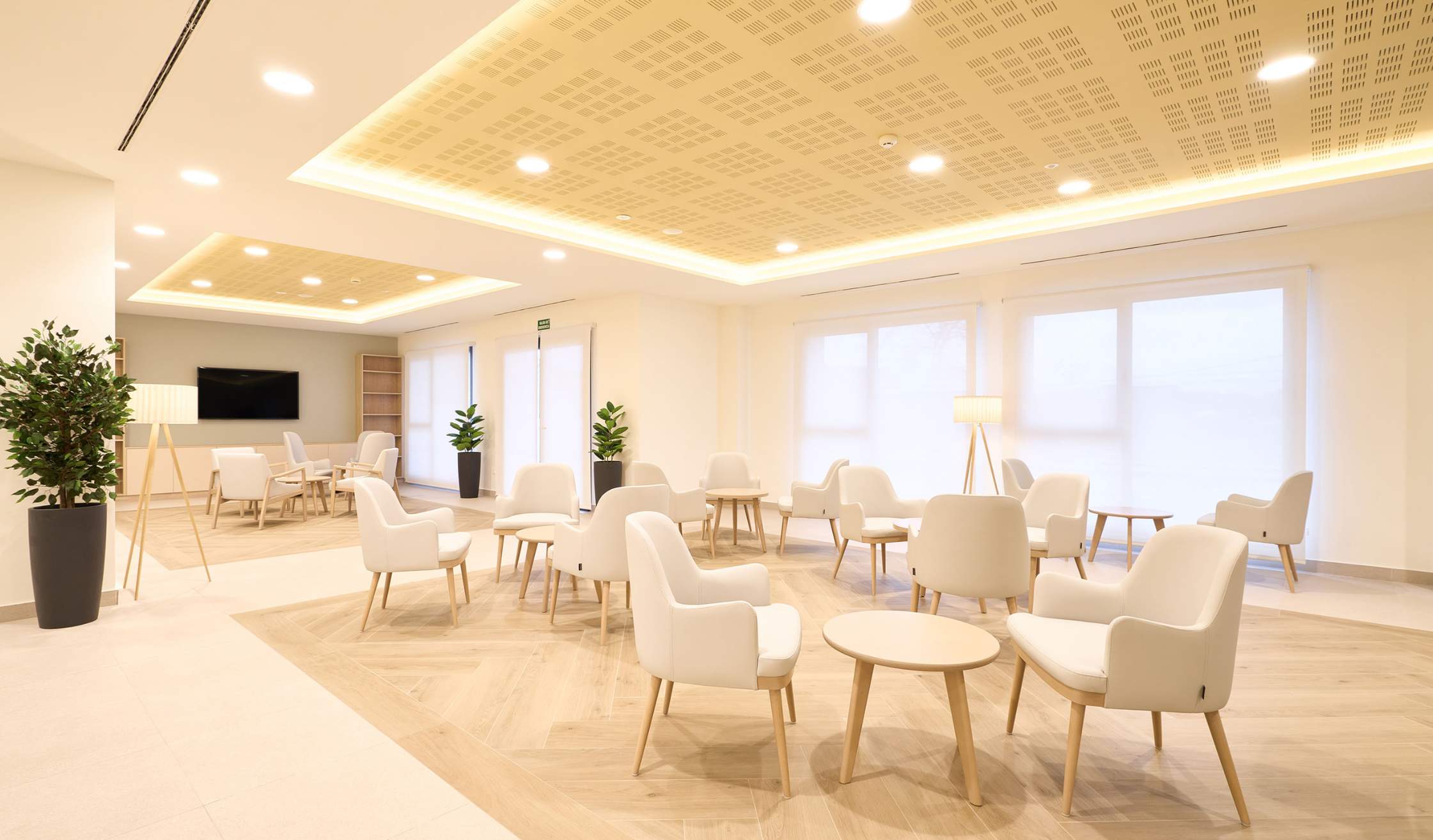 - Salas especiales, como espacio de fisioterapia y rehabilitación, farmacia, despachos médicos, sala multisensorial…