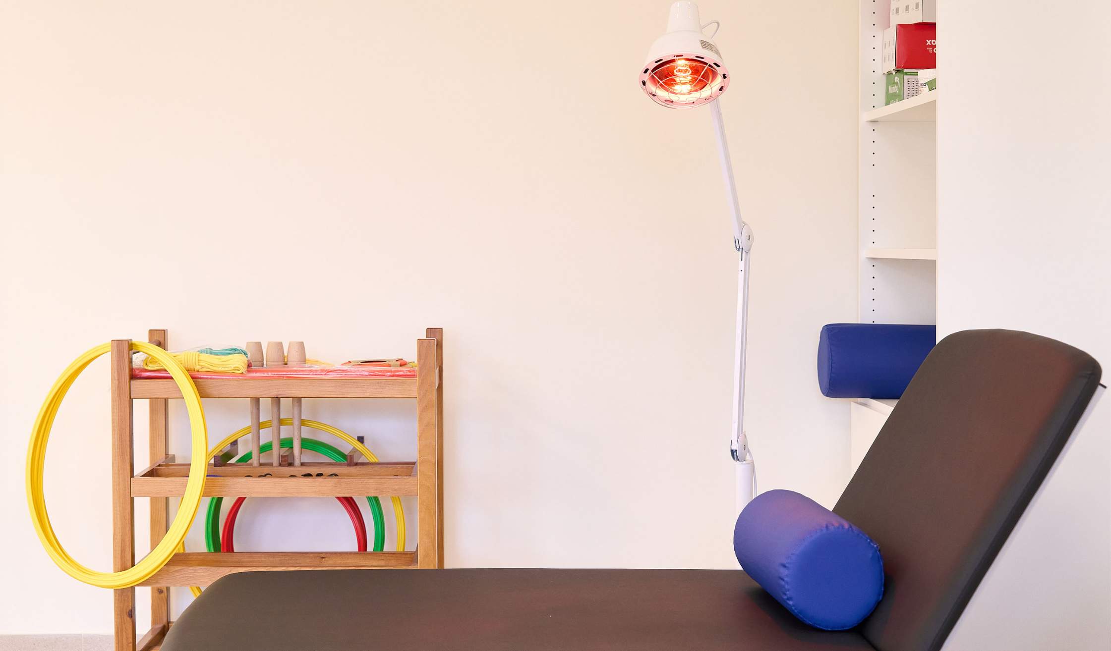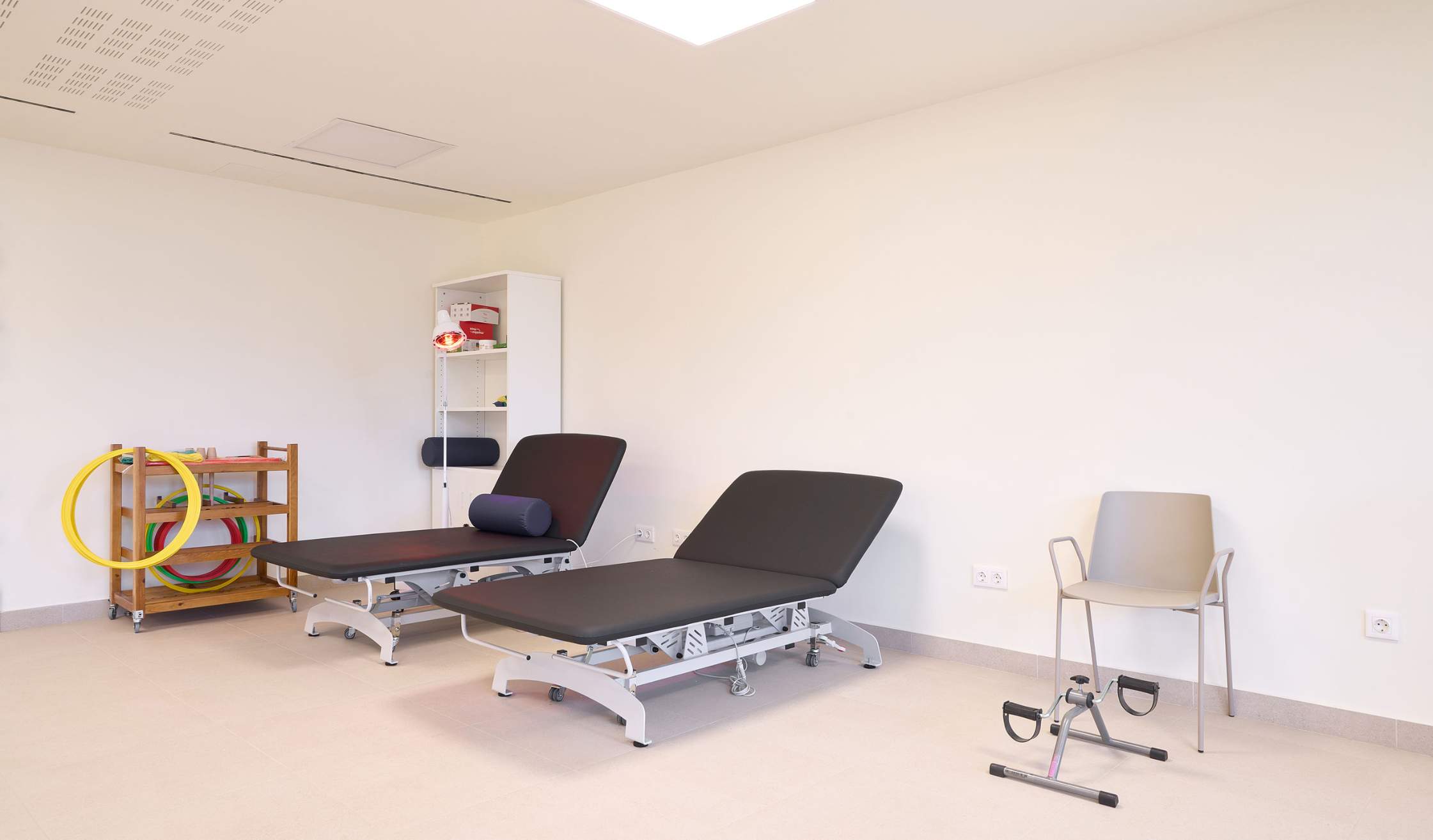Para los espacios de fisioterapia y rehabilitación se suministra mobiliario técnico, así como camillas y equipamiento médico.