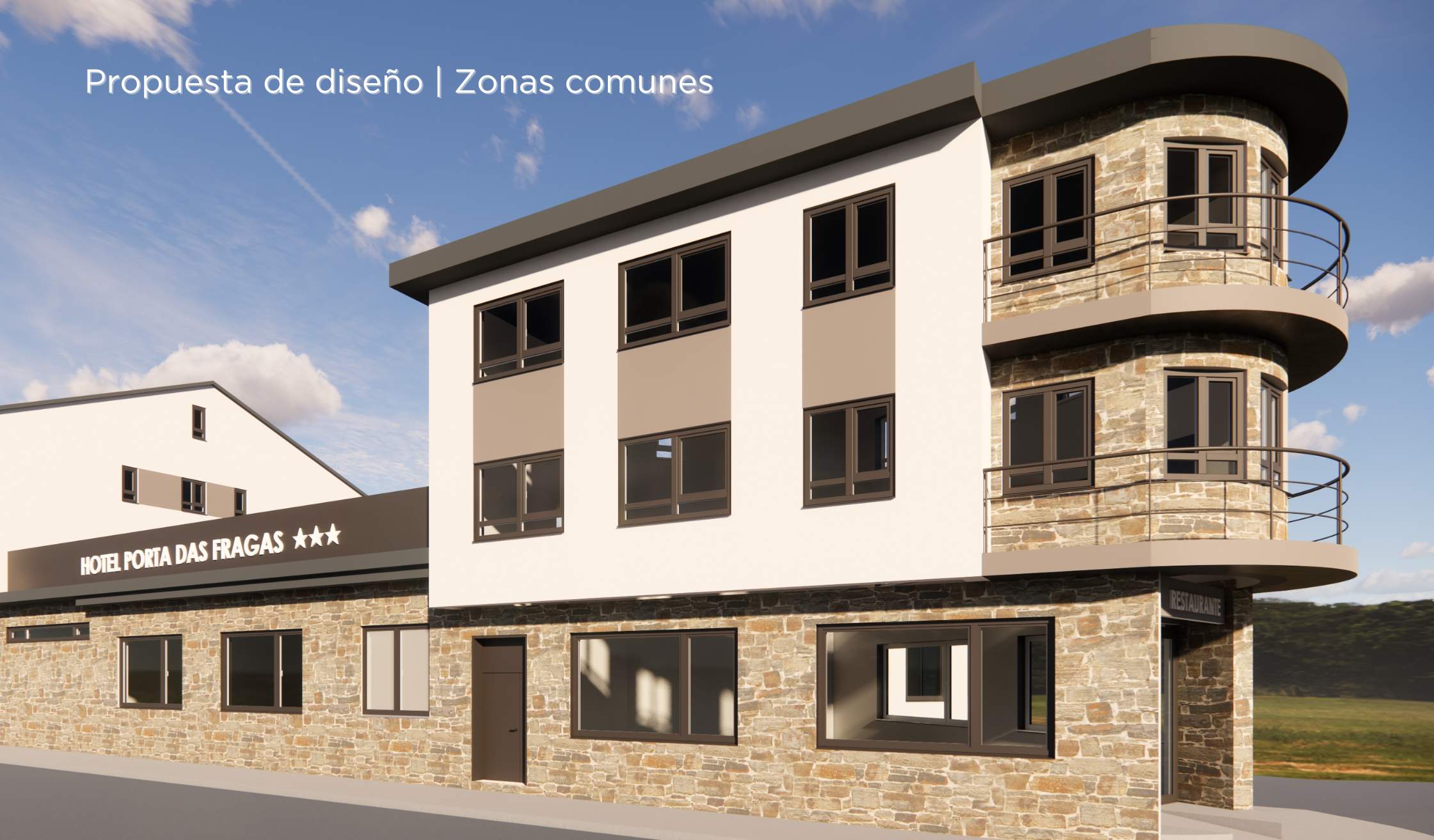El Hotel y Restaurante Porta das Fragas retoma su actividad tras una renovación integral de sus instalaciones, situadas en el municipio de As Neves (A Coruña). Con 3.000 m2 de zonas interiores y exteriores, y 20 habitaciones y apartamentos, desde Sutega se lleva a cabo un proyecto Design&Build que transforma el espacio de hotelería para convertirlo en parada obligatoria para turistas y trabajadores de la zona. Diseño, construcción, carpintería a medida, equipamiento integral y rotulación para crear un proyecto hotelero totalmente renovado.