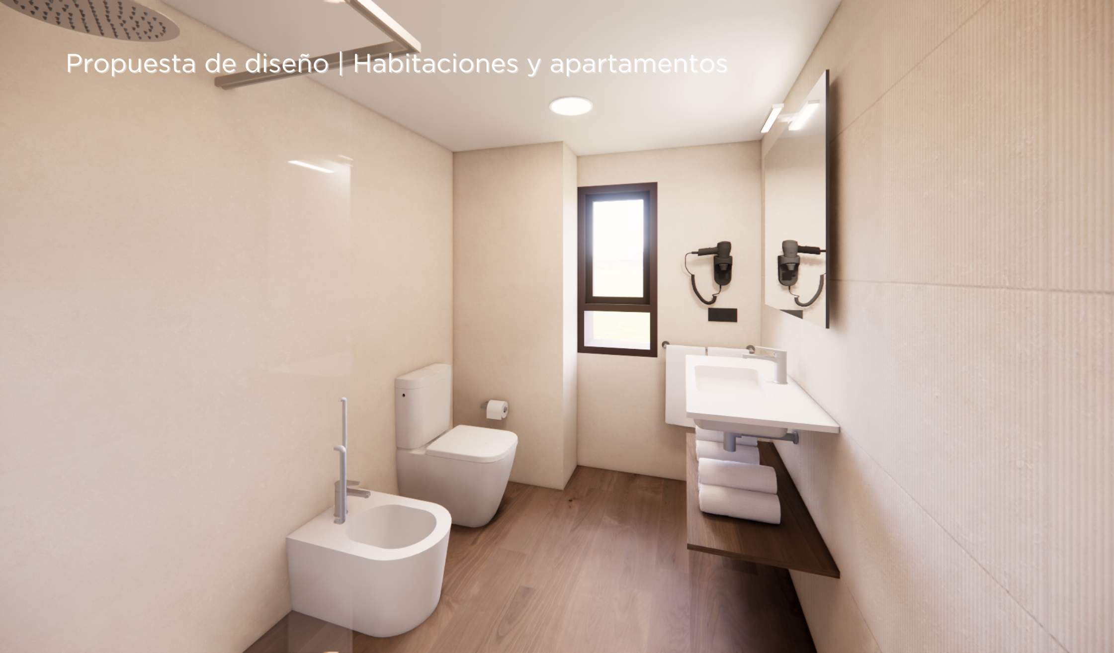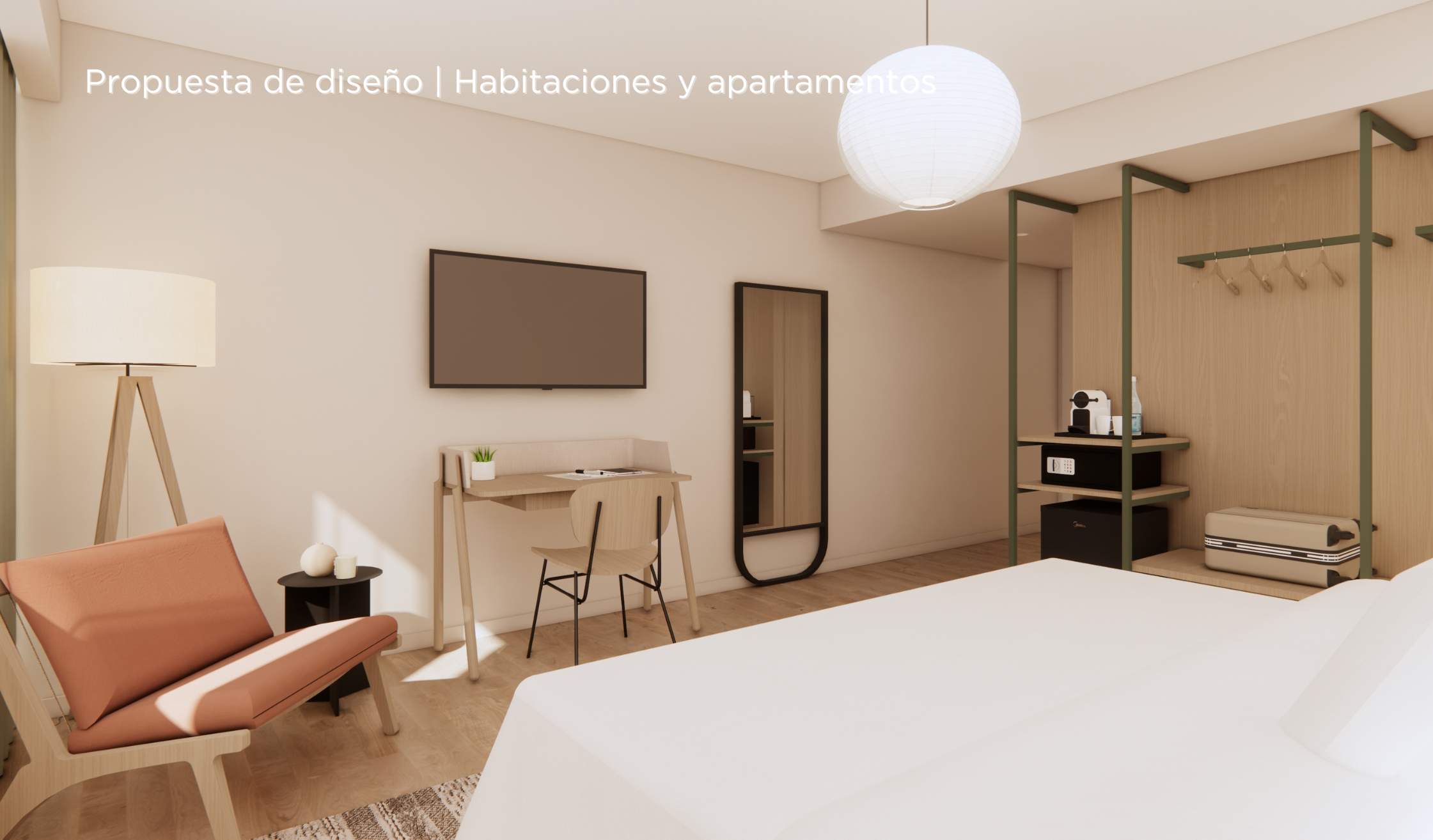 Con trabajos de arquitectura, ingeniería e interiorismo, así como adaptación a los requisitos de Turismo para elevar la categoría del hotel, desde Sutega se realiza un proyecto completo de transformación del inmueble.