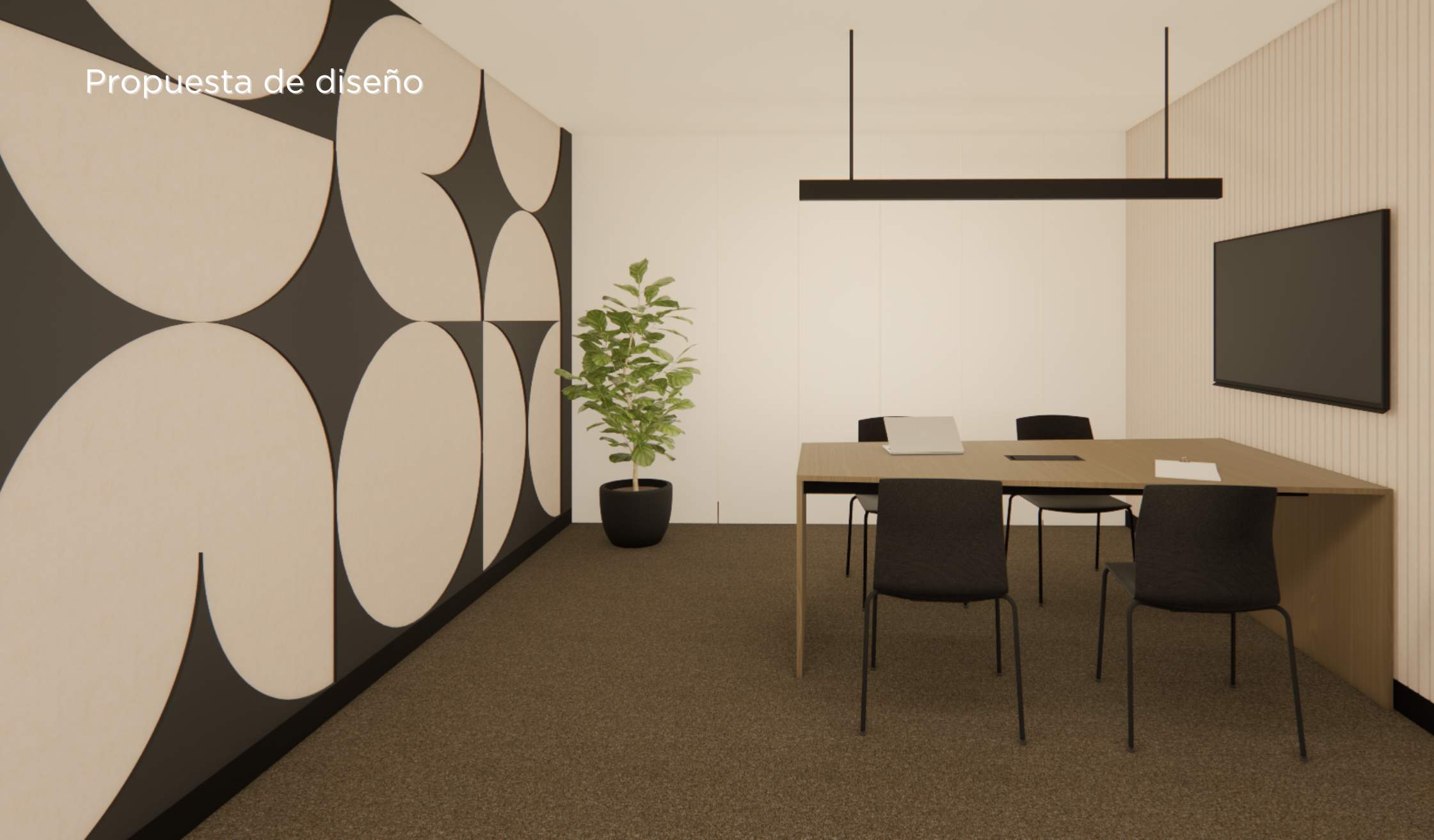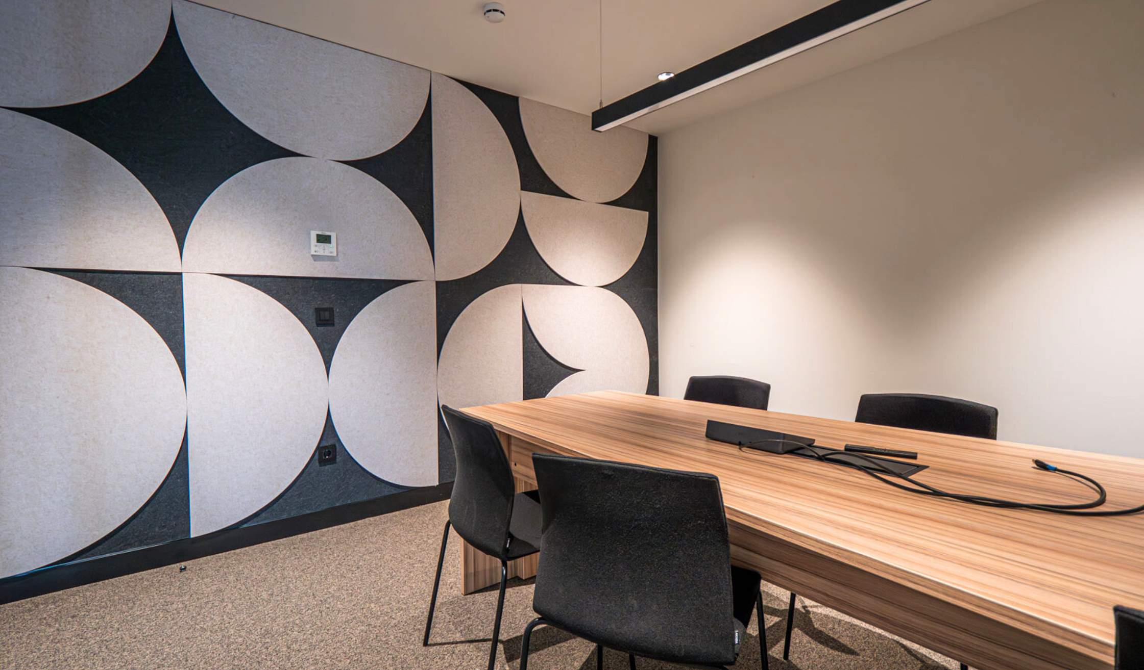 - Panelado acústico en diversas zonas, jugando con las formas del logo de Russula para la estética.