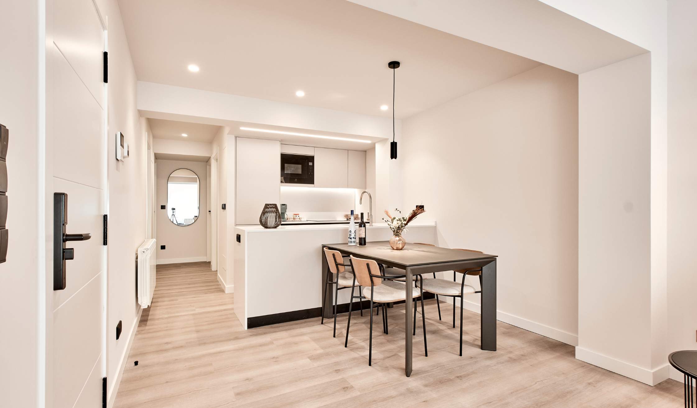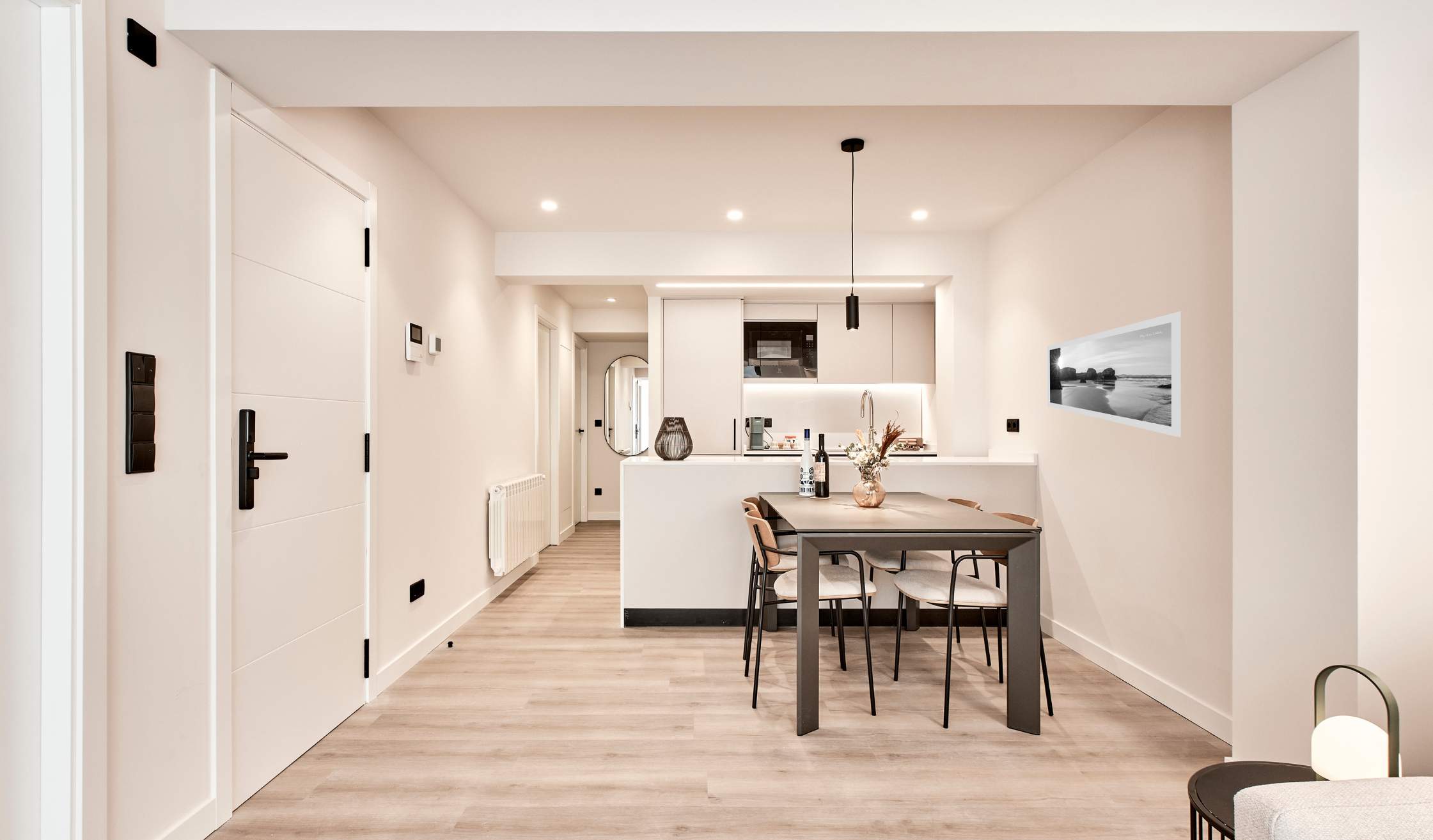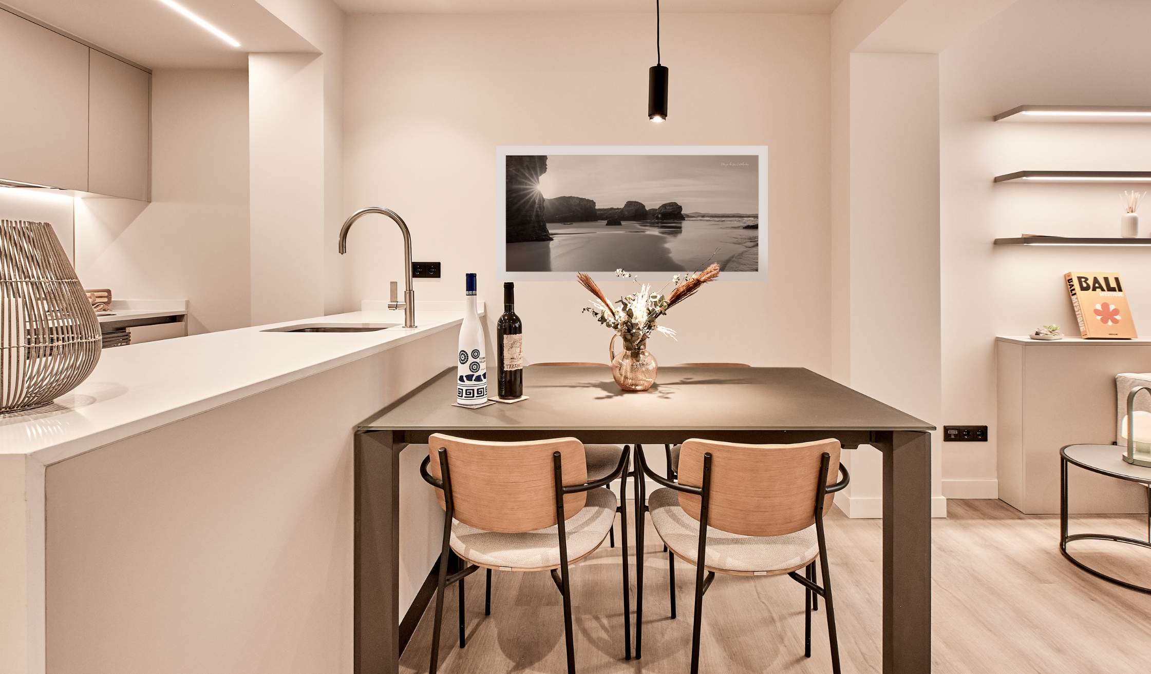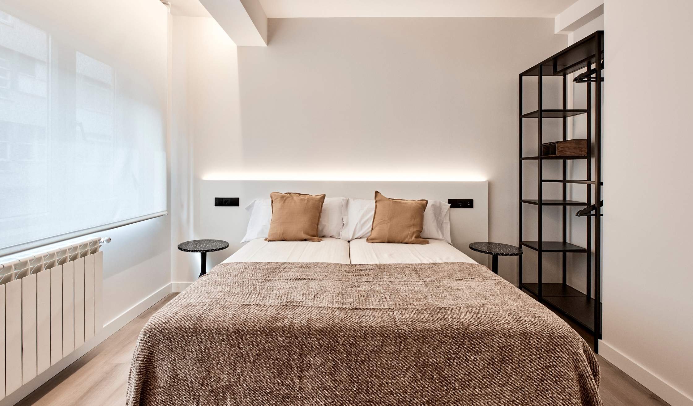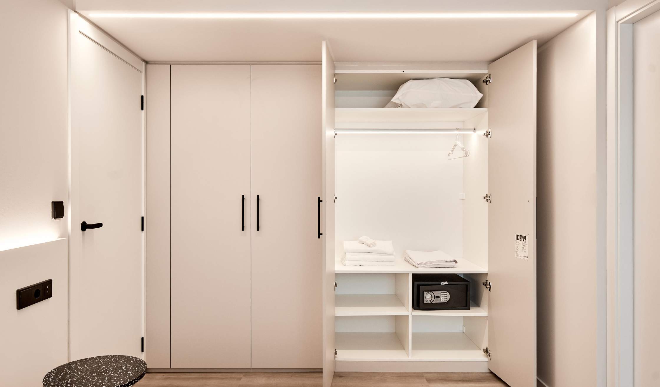 Cada apartamento se equipó pensando en la comodidad y la practicidad del día a día, incorporando mobiliario funcional como mesas y sillas compactas, sofás cómodos y armarios con gran capacidad de almacenamiento, además de estores que aportan privacidad y permiten regular la entrada de luz.