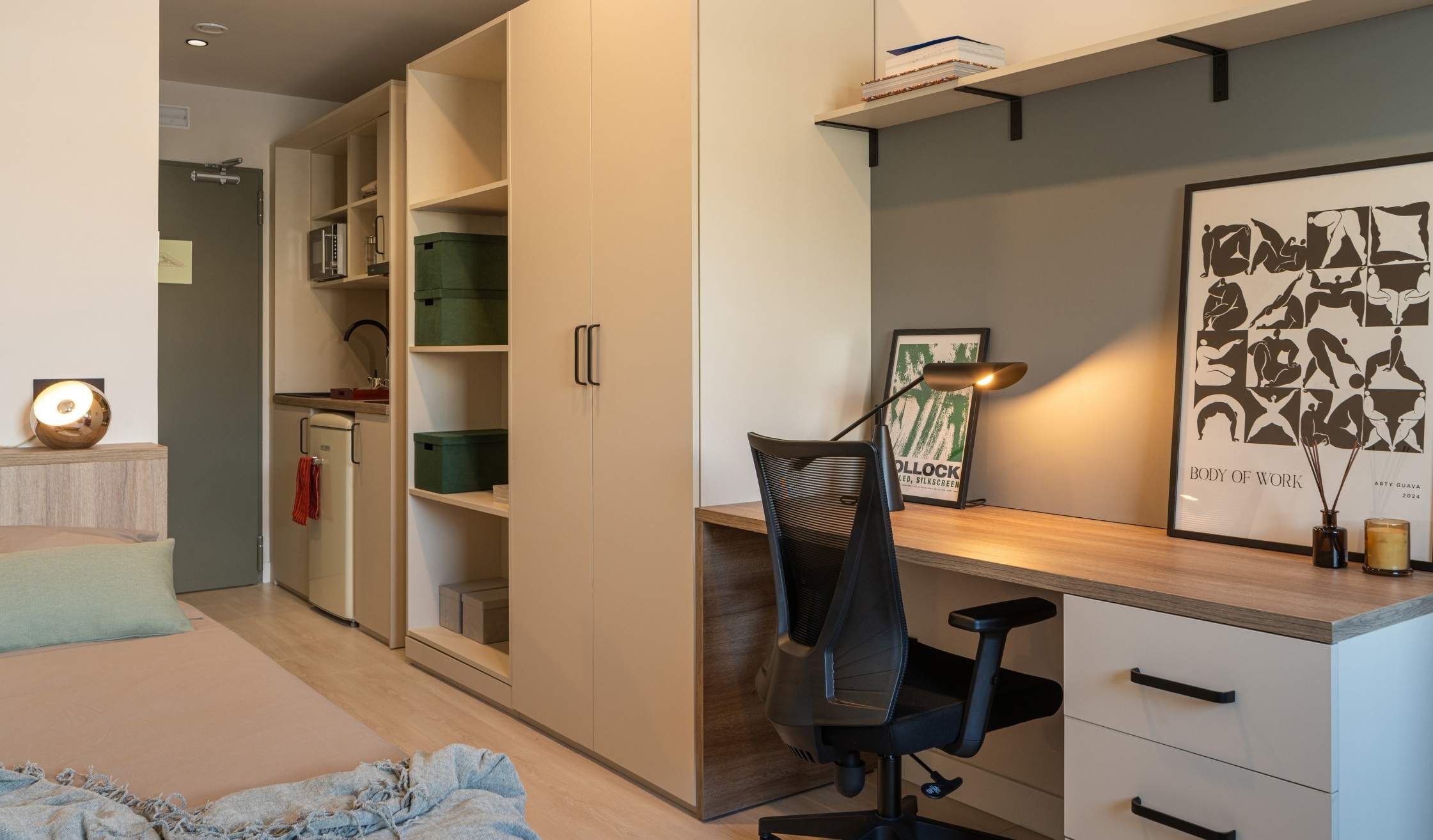 Con estudios individuales, habitaciones dobles compartidas, estudios premium y espacios adaptados PMR, este Flex Living se adapta a todos los gustos y requerimientos.
