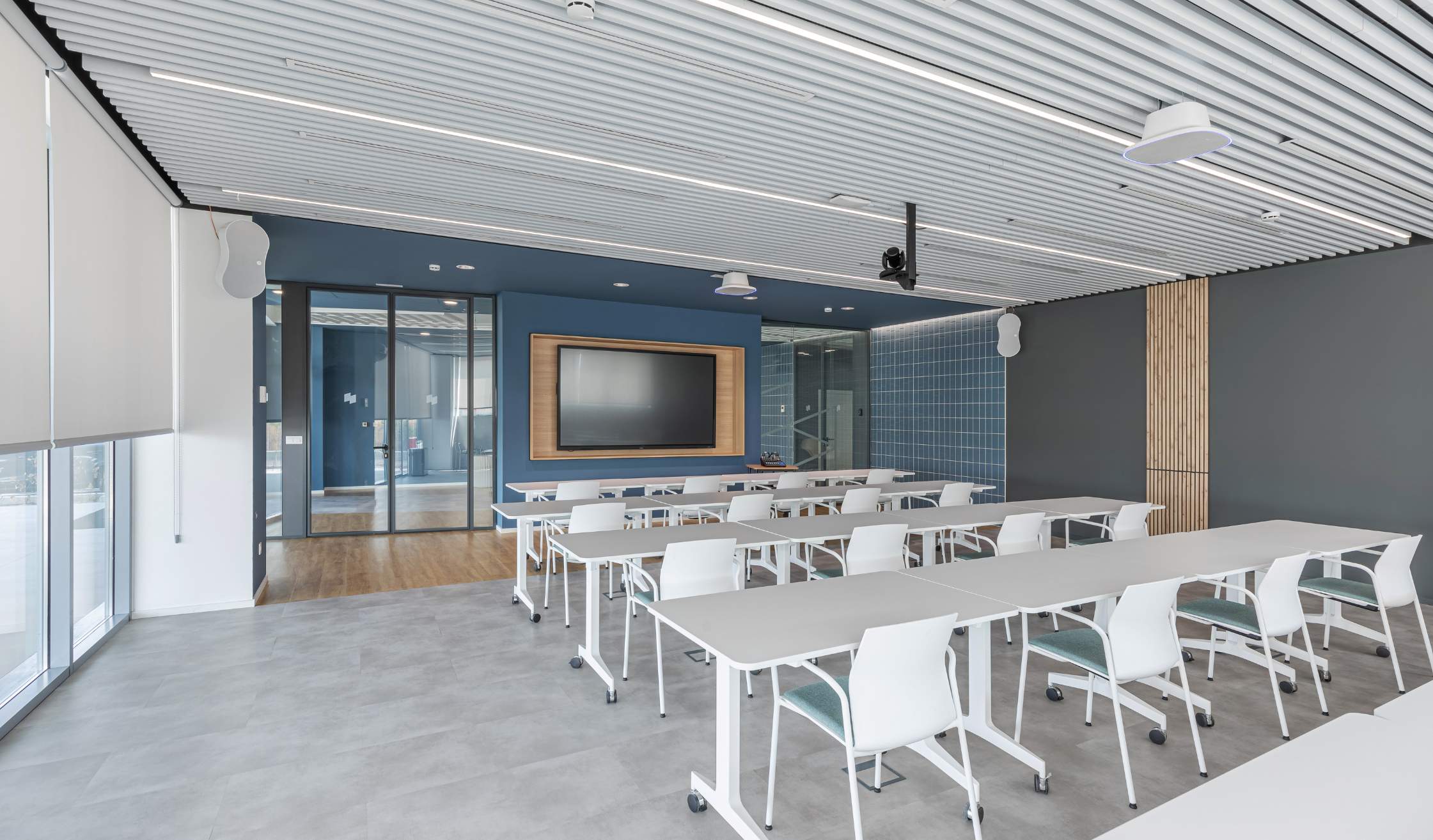 Sutega implantó soluciones tecnológicas y audiovisuales que refuerzan la conectividad y la eficiencia. Entre ellas, destaca la instalación de pantallas y sistemas de videoconferencia en las salas de reuniones, el aula de formación y el ágora.