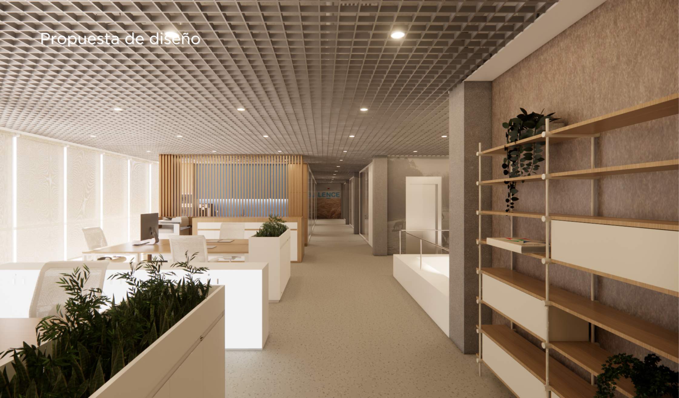El proyecto mantiene la esencia de oficina industrial, como pide el cliente, pero introduce calidez, coherencia visual y bienestar.