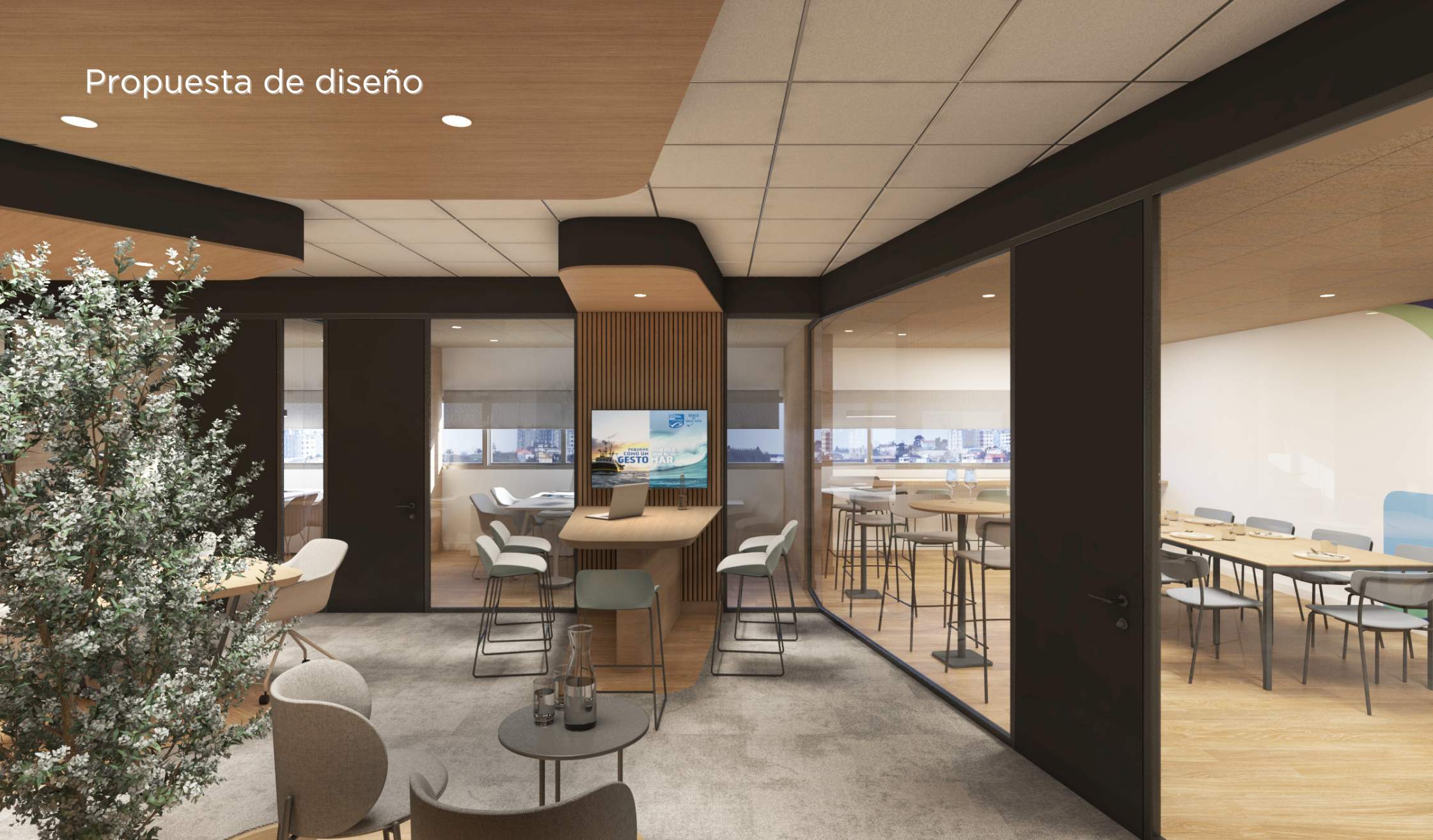 Nauterra, compañía gallega de alimentación, habilita un espacio de trabajo de unos 600 m2 en A Coruña. Para ello, Sutega asume un proyecto Design&Build, diseñando un workplace que reflejara la identidad y cultura corporativa de Nauterra, alineado con los estándares de la sede principal y pensado para potenciar la productividad, la colaboración y el bienestar de los empleados.