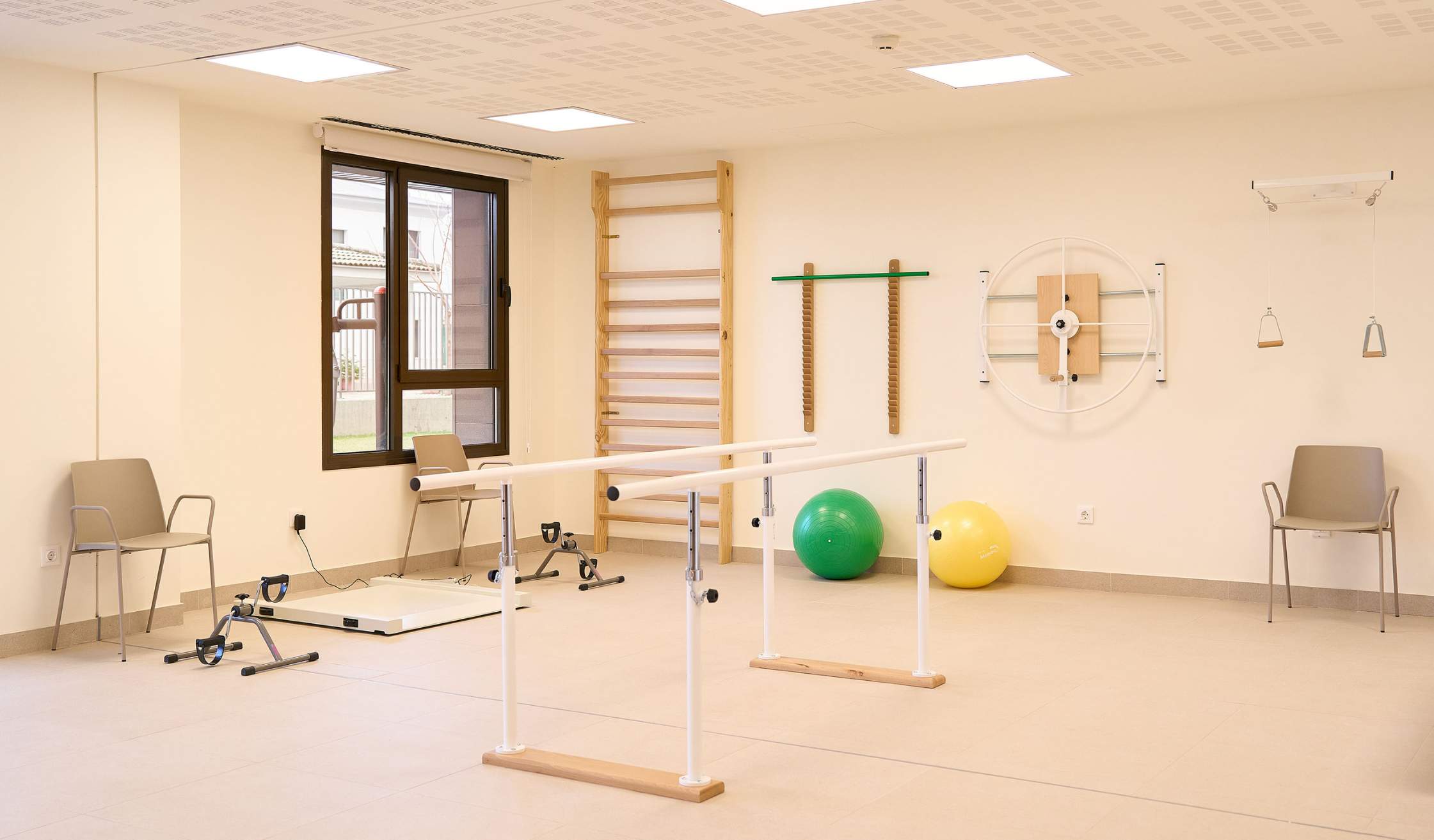 Para los espacios de fisioterapia y rehabilitación se suministra mobiliario técnico, así como camillas y equipamiento médico.