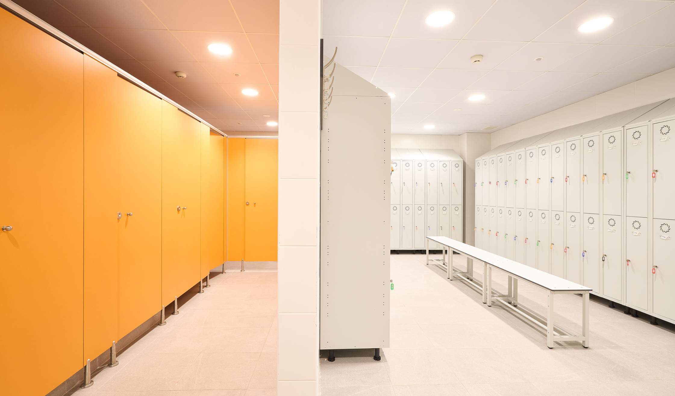 Zona de empleados: salas de personal interno, vestuarios, cocina, comedor privado… El personal del centro dispone de diferentes zonas donde Sutega ha suministrado el equipamiento, como taquillas y demás mobiliario funcional.