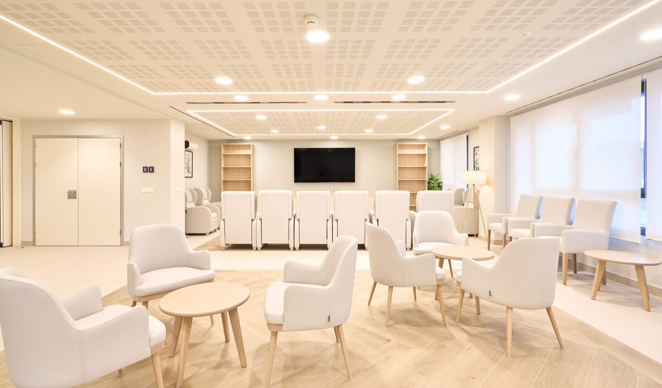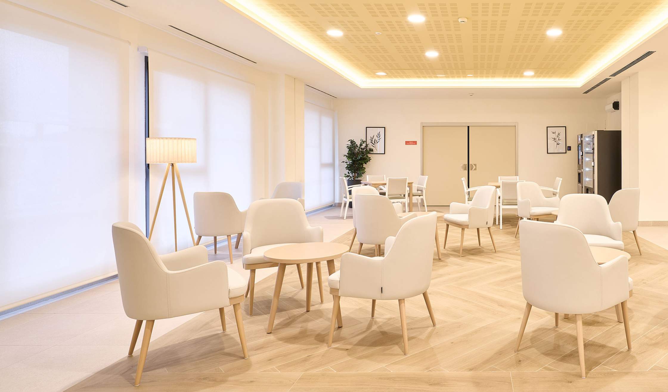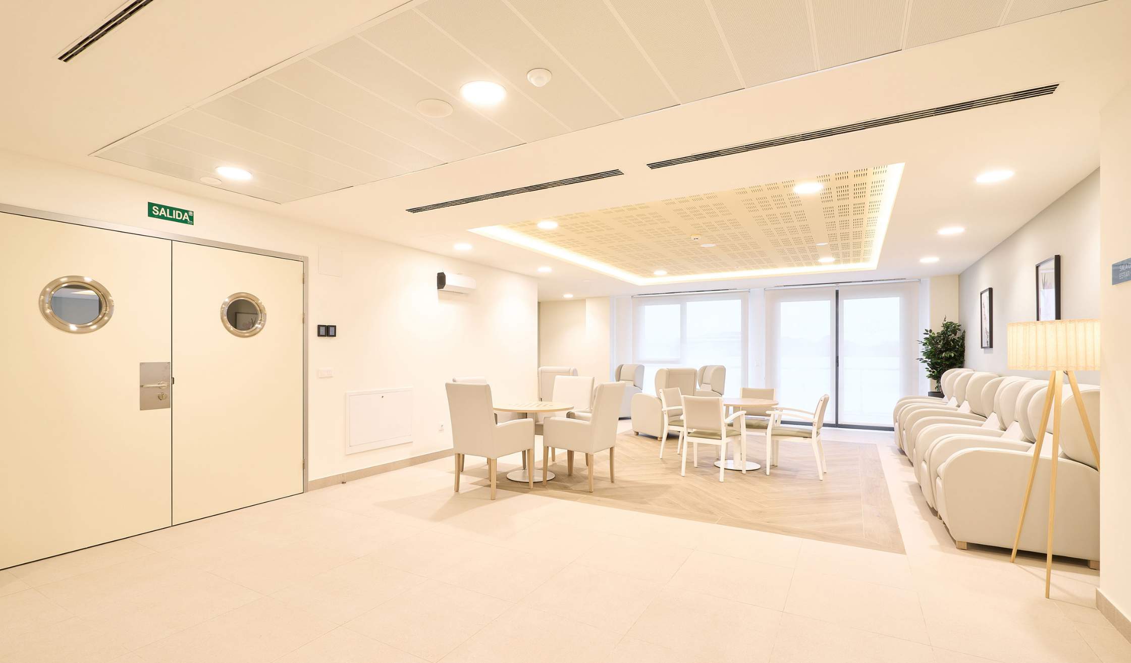 - Salas especiales, como espacio de fisioterapia y rehabilitación, farmacia, despachos médicos, sala multisensorial…