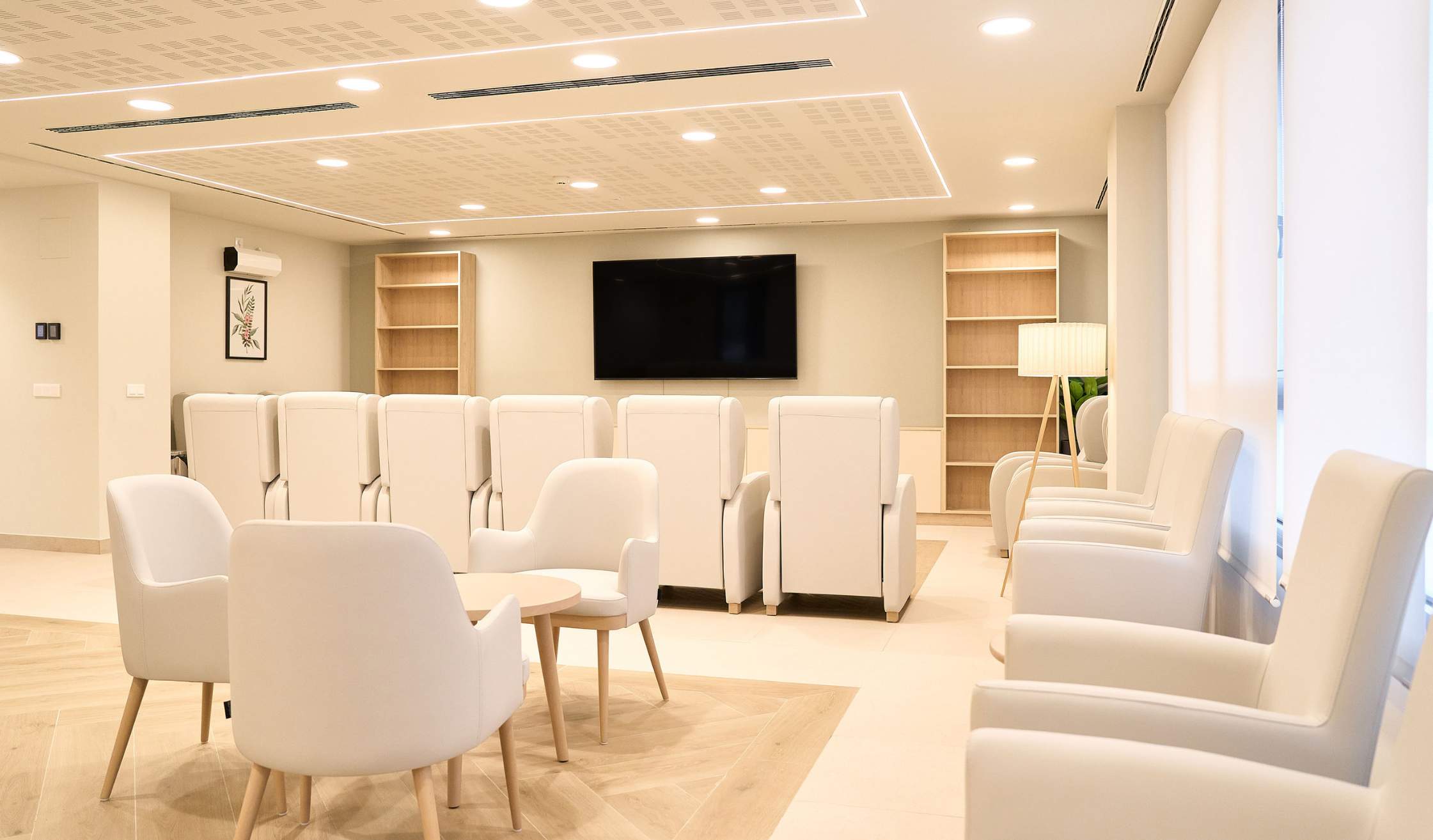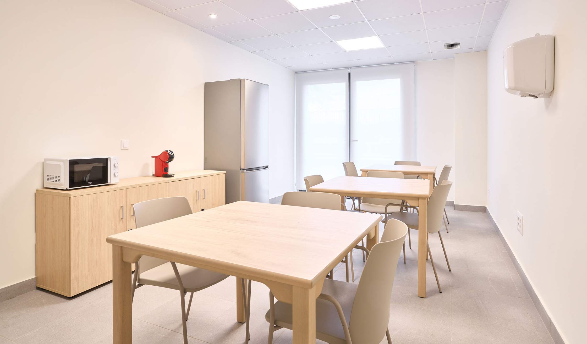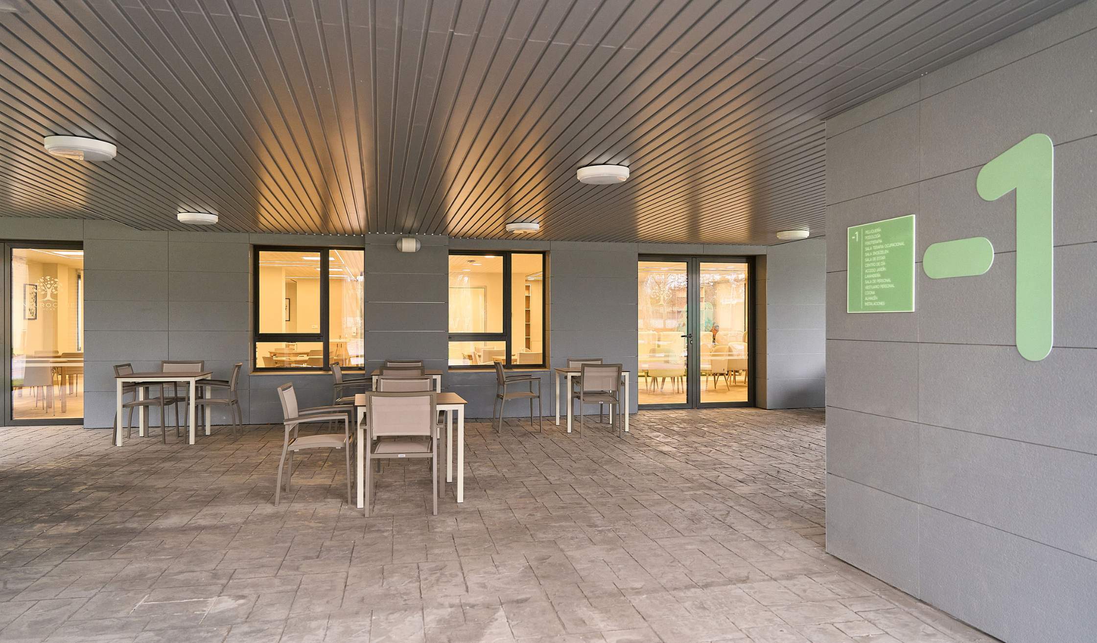 - Salas especiales, como espacio de fisioterapia y rehabilitación, farmacia, despachos médicos, sala multisensorial…