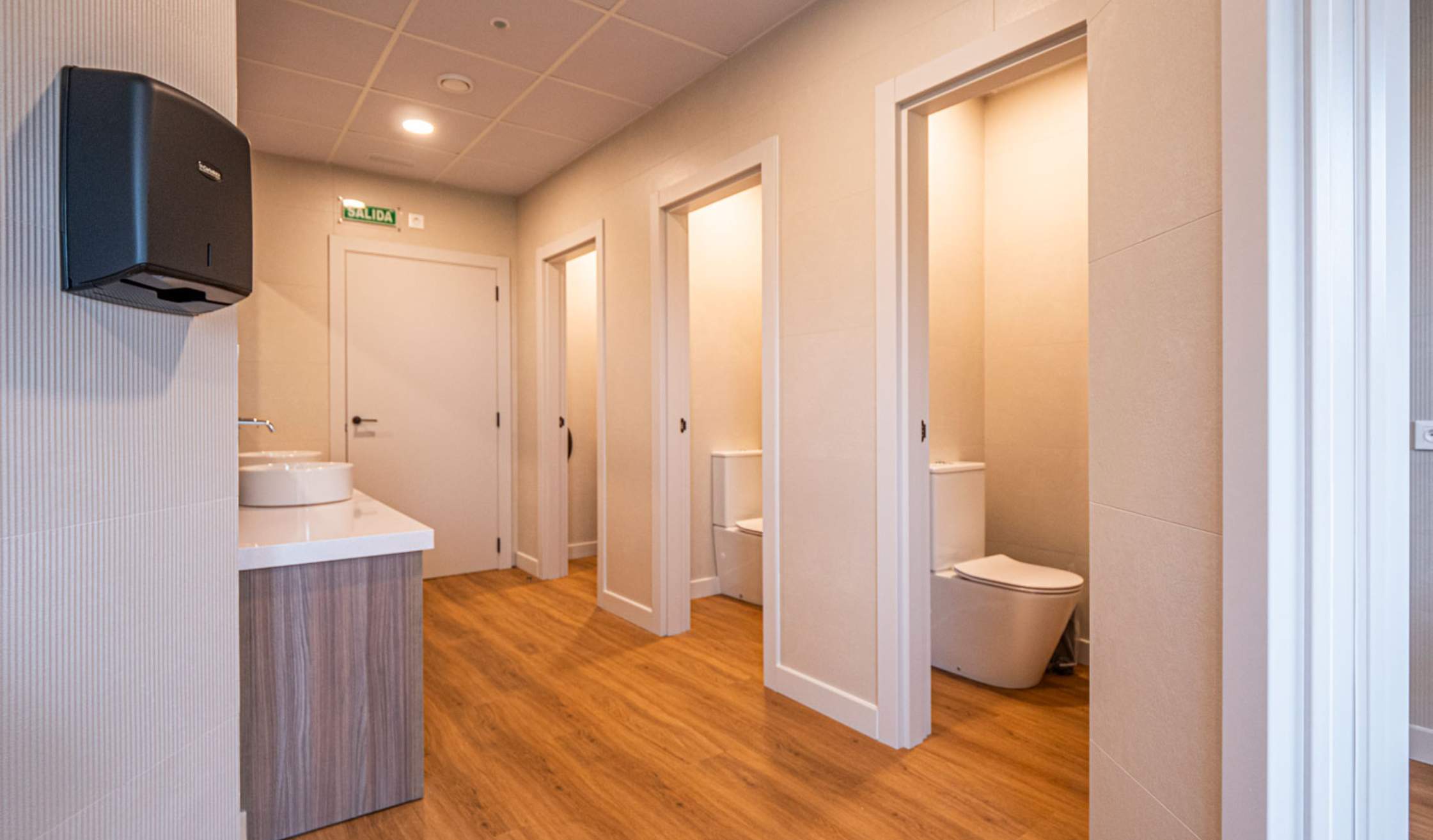 - Otros trabajos, como pintura, realización de una barra perimetral en la zona de cafetería, carpintería de aluminio, actuaciones de ingeniería, modificación de aseos comunes y adaptación PMR, PCI…