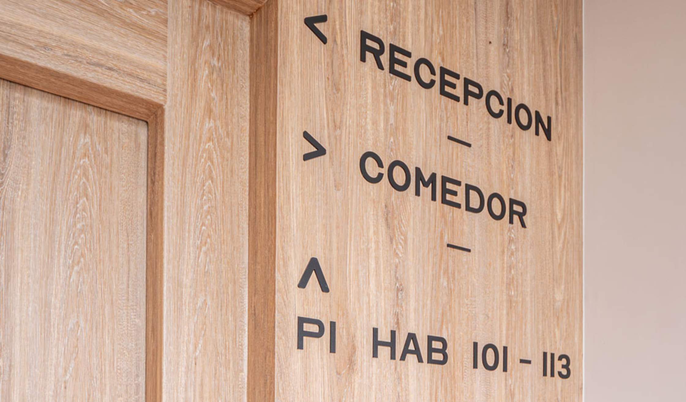 Como complemento al proyecto Desgin&Build para el hotel, se realiza la rotulación interior y exterior del mismo, incluyendo la señalética informativa en accesos comunes, pasillos y recepción, así como los cuadros decorativos de diversas estancias.