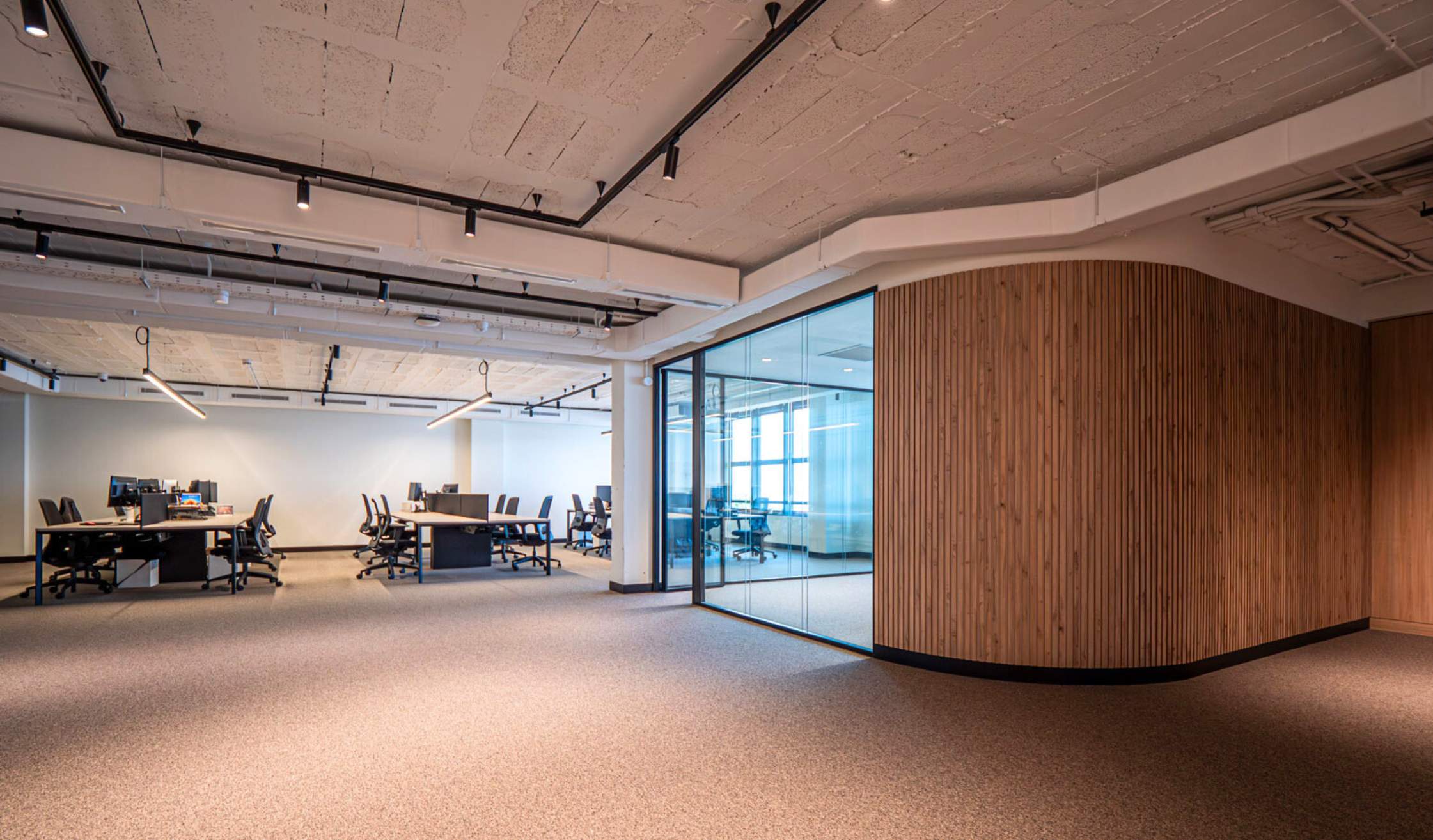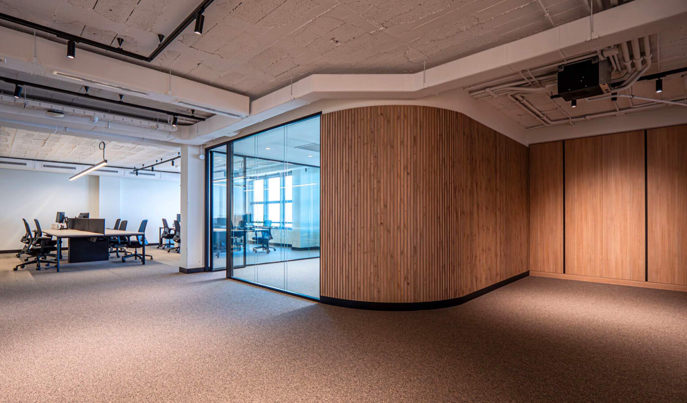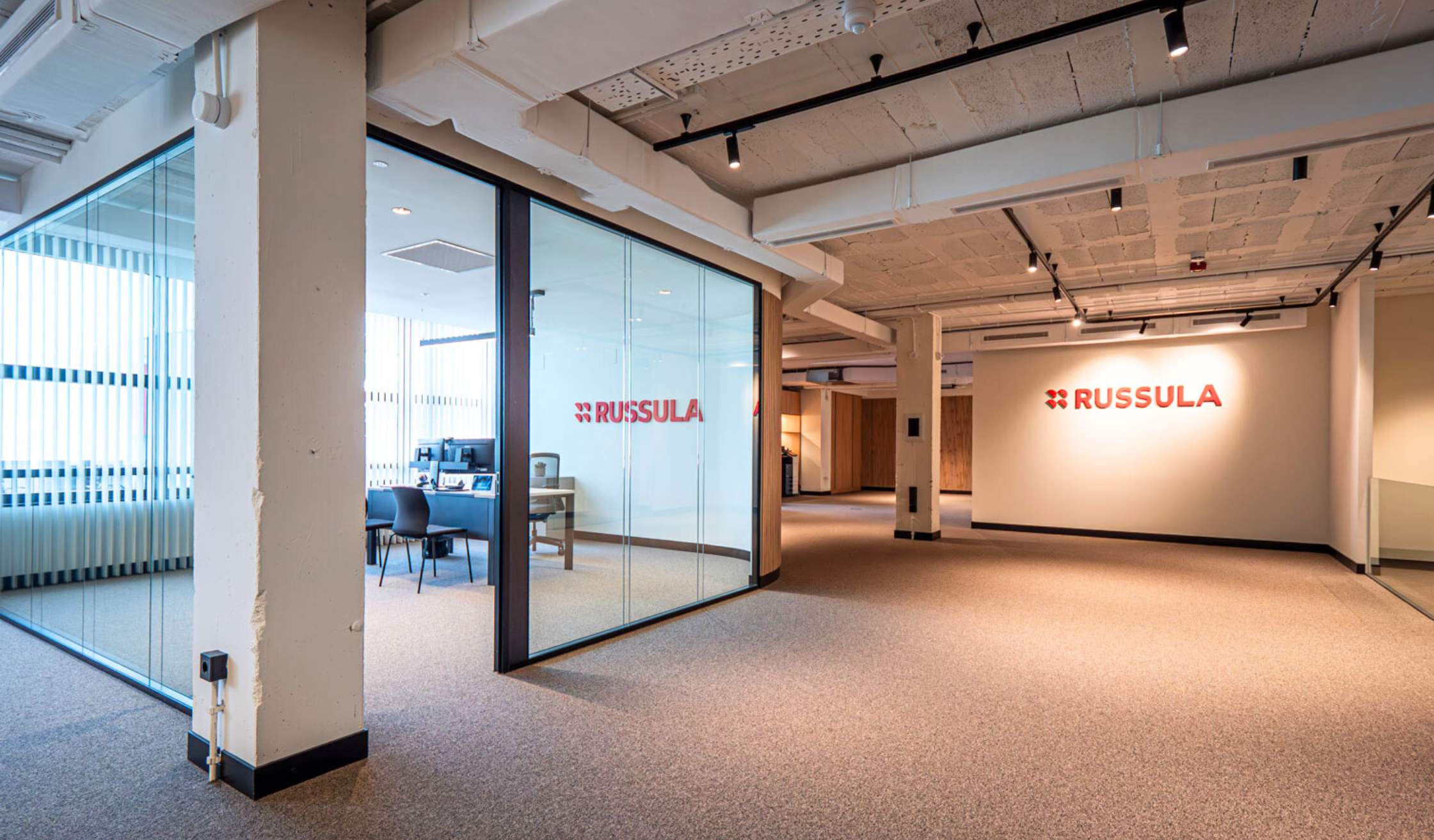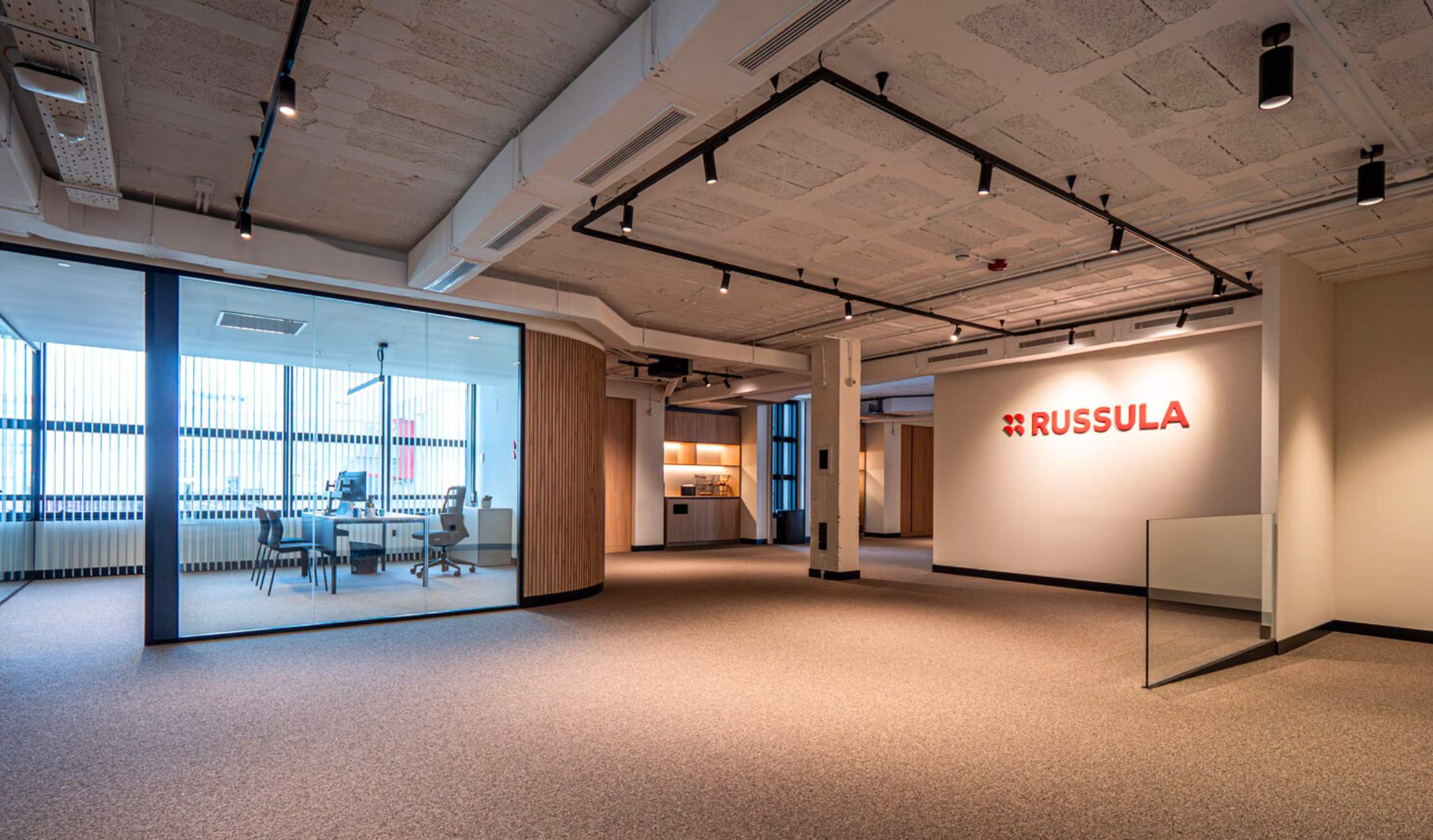 Desde Russula buscaban un Workplace innovador y funcional, que tuviese muchos espacios diáfanos sin renunciar a la privacidad que dan los despachos o salas de reuniones. Es decir, un entorno híbrido que combinase amplitud, luminosidad e intimidad.